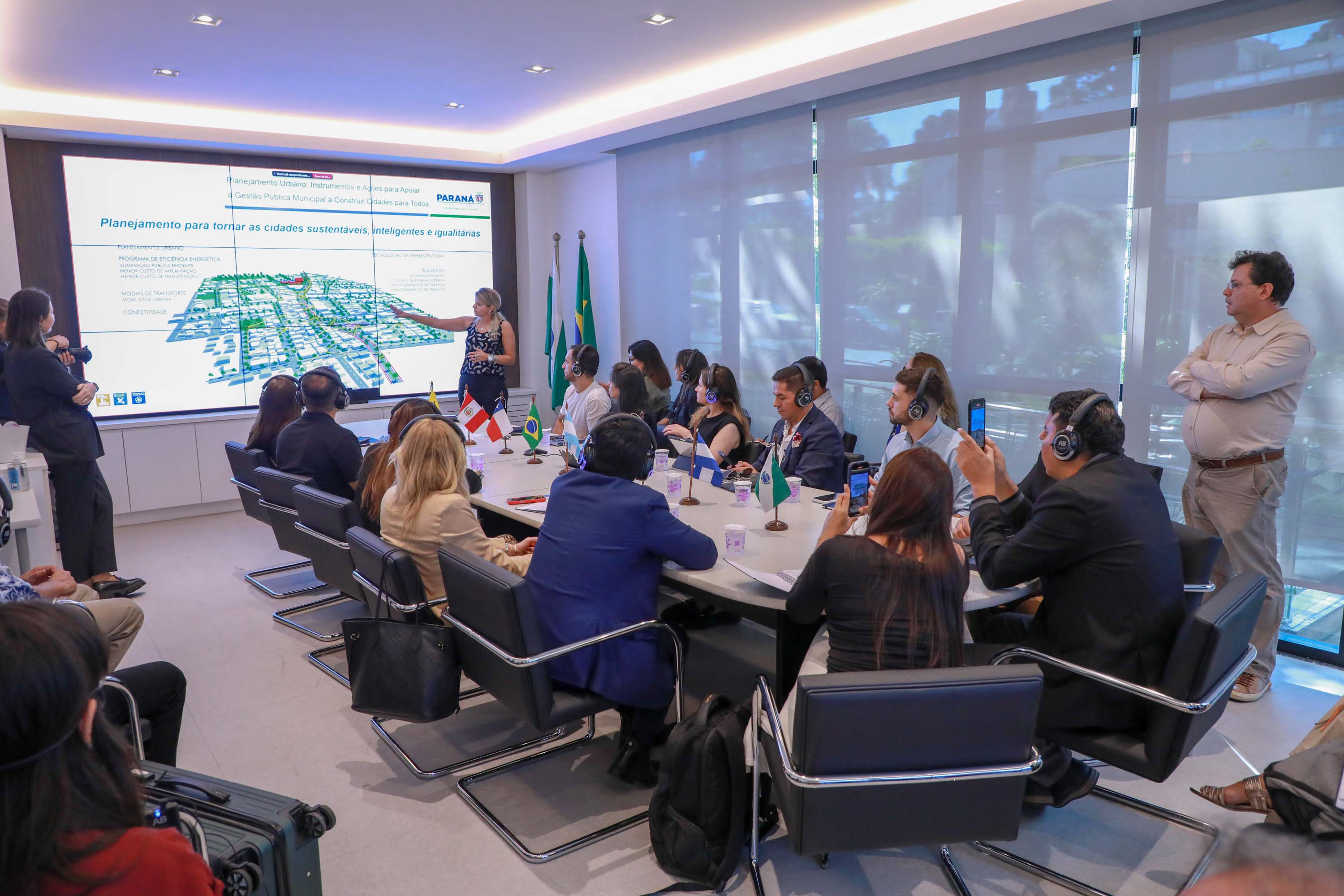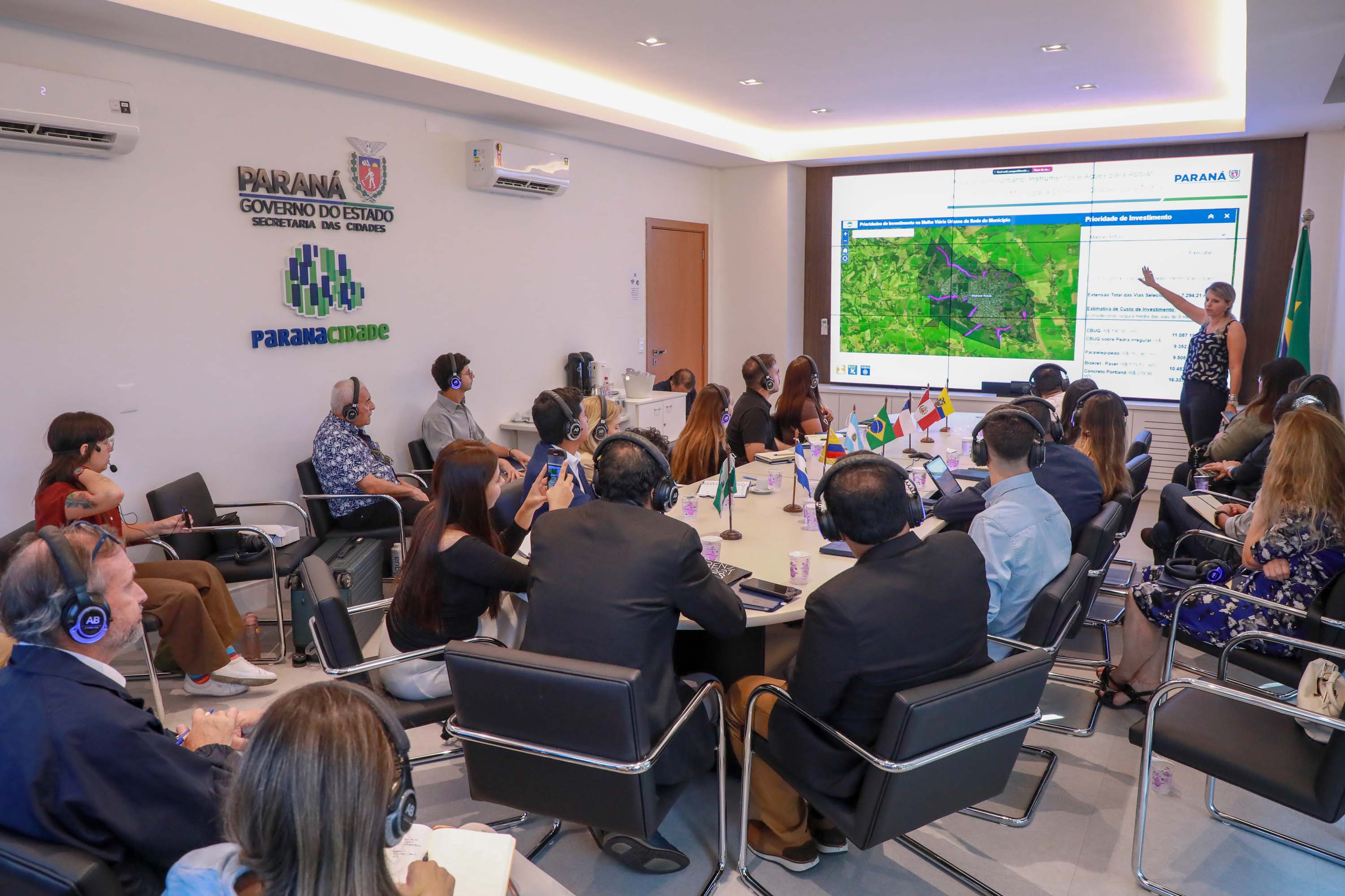 Uma comitiva latino-americana composta por 22 pessoas dos setores público e privado visitou nesta segunda-feira, 24, a sede da Secretaria Estadual das Cidades (SECID). Liderada pela diretora da Trend Smart Cities, Lucia Bellocchio, a missão conta com profissionais da Argentina, Chile, Colômbia, Equador, El Salvador e Peru.