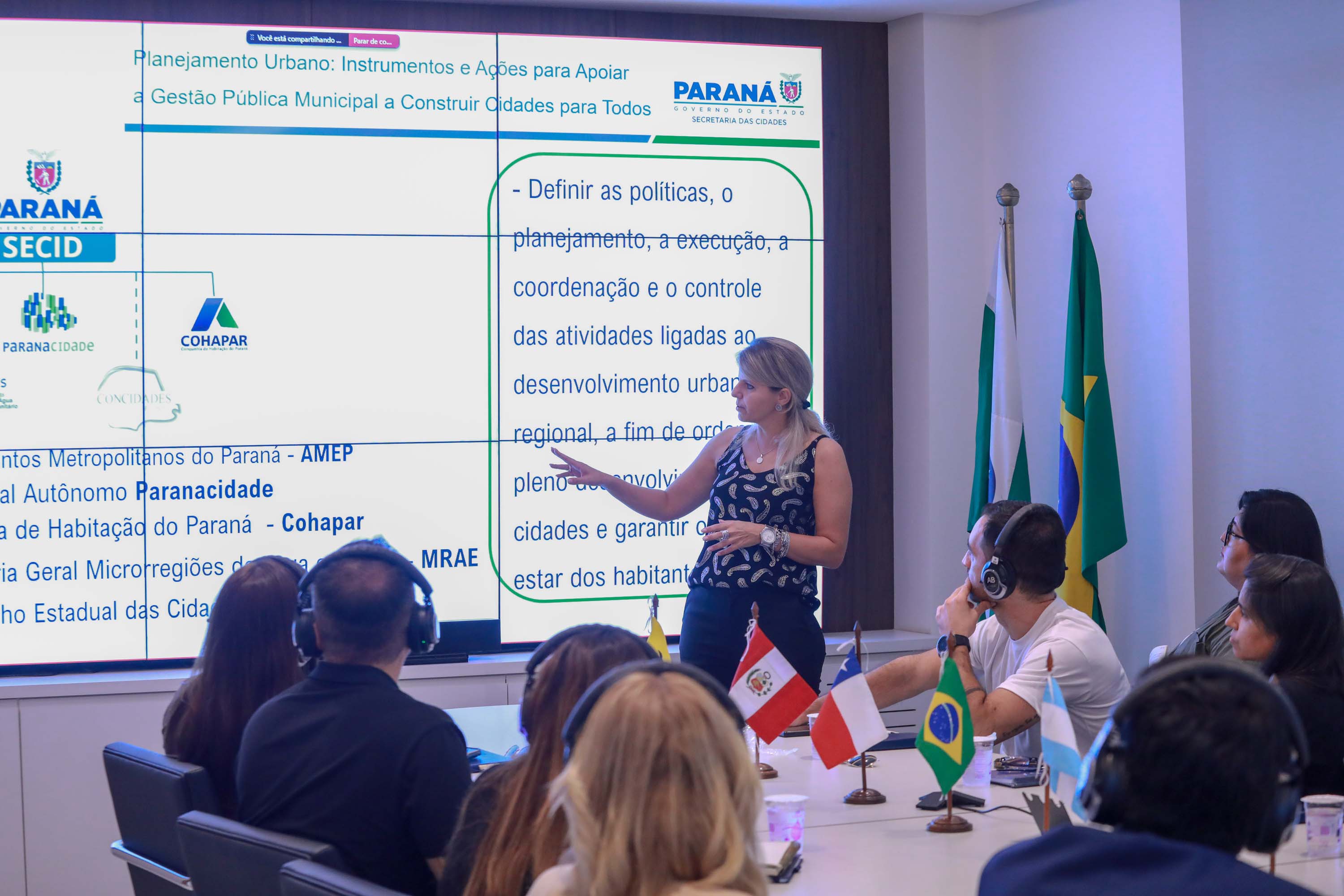 PLANEJAMENTO URBANO - A secretária estadual das Cidades e superintendente do Paranacidade, Camila Mileke Scucato, fez uma apresentação sobre o tema “Planejamento Urbano: instrumentos e ações para apoiar a gestão pública municipal e construir Cidades para todos”. Ela destacou que a estimativa é a de que a população urbana do Paraná em 2030 seja 92% do total de habitantes e, por isso, há necessidade de um planejamento que torne as cidades sustentáveis, inteligentes e igualitárias.