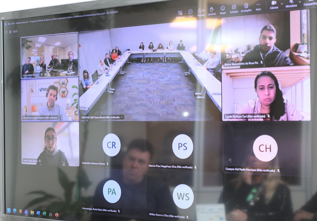 Representantes do Banco Interamericano de Desenvolvimento (BID) e membros da Unidade Gestora do Programa (UGP) do Paranacidade, vinculado à Secretaria de Estado das Cidades do Paraná (SECID), da Secretaria de Assuntos Internacionais e Desenvolvimento (SEAID) e Secretaria do Tesouro Nacional (STN) se reuniram na manhã desta sexta-feira, 31, para acompanhar a execução da Operação do Programa Paraná Urbano III, que já se encontra na reta final, com previsão de encerramento em abril de 2026. “Acordos propostos foram aprovados, como o do pleito de aditamento de prazo do contrato do PPU III, por mais um ano, para que os Projetos Institucionais dos Municípios do Paraná possam ser finalizados a tempo e incluídos no escopo do Programa”, destacou a superintendente executiva do Paranacidade, que comandou a reunião do seu gabinete, em Curitiba, Camila Mileke Scucato.