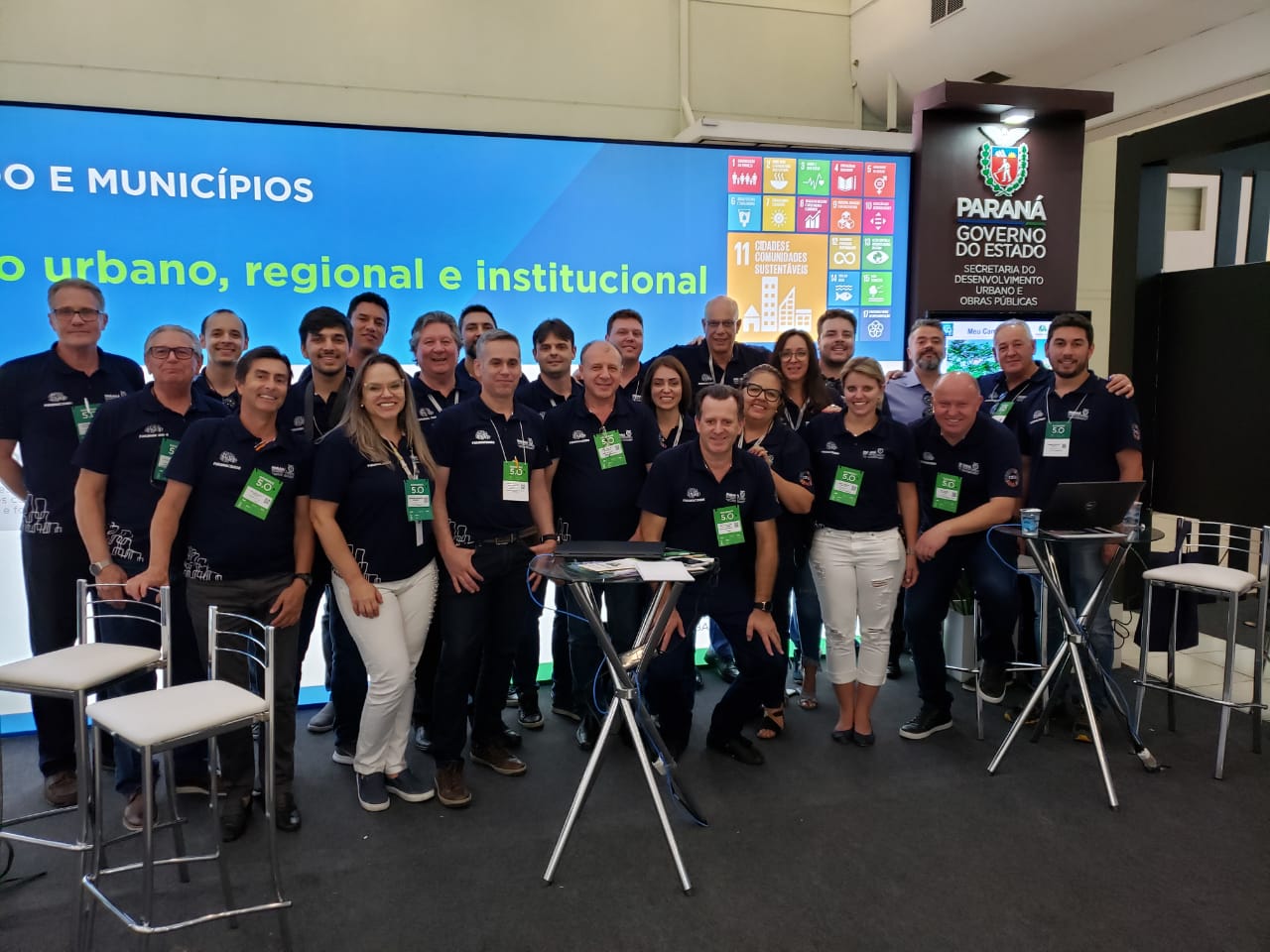 Nos eventos do Governo do Paraná, como no Paraná Mais Cidades, em Foz de Iguaçu, na última semana, todos os profissionais do Serviço Social Autônomo Paranacidade, vinculado à Secretaria de Estado das Cidades (SECID), demonstraram o seu comprometimento com o Pacto Global, com a Agenda 2030 da ONU, com vistas à promoção de um Mundo melhor, mais Sustentável e Resiliente. Eles vestiram mais uma vez a camiseta da Missão a qual se propõem, desta vez, na cor branca, incentivando ações fundamentais para a humanidade e para o Planeta: Pessoas, Planeta, Paz, Prosperidade e Parcerias.