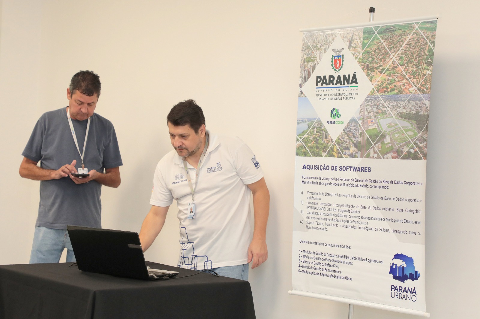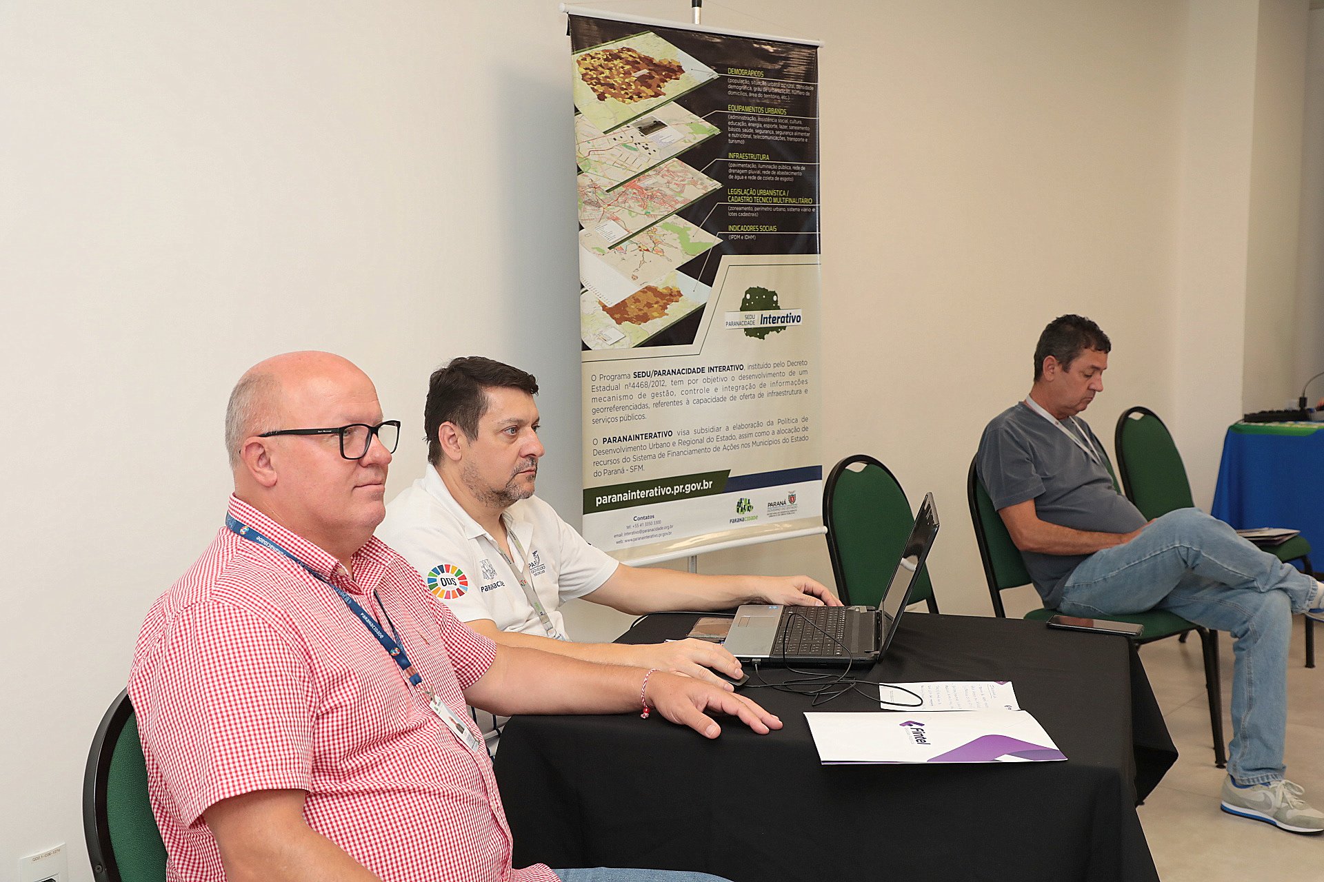 Os dois profissionais pertencem à Coordenadoria de Desenvolvimento Institucional Municipal do Paranacidade. Também participaram do evento o coordenador Regional Operacional Municipal de Ponta Grossa – CMPG -, José Elizeu Chociai, ao lado dele estava ainda a técnica, Aline Maria Laurindo. Além de prestarem apoio técnico e institucional, os representantes do Paranacidade deram esclarecimentos e encaminhamentos corretos a dúvidas recebidas no evento. Para registrar o trabalho, com o grupo estava o fotógrafo, Marcio Rogerio Faria, que fez dezenas de fotos.