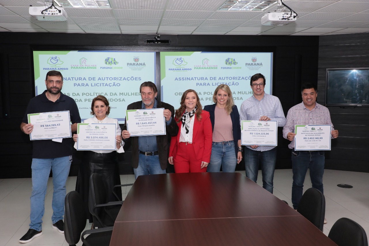 O Governo do Paraná autorizou R$ 13,2 milhões em licitações para a execução de obras voltadas ao fortalecimento das Políticas Públicas para mulheres e pessoas idosas em sete municípios do Estado. Entre as autorizações, está a implantação da primeira Casa da Mulher Paranaense, em Corbélia. As demais autorizações incluem construções, ampliações e reformas que vão ampliar a rede de acolhimento, proteção e convivência das pessoas idosas. As autorizações foram entregues em um evento no Palácio das Araucárias, nesta quarta-feira, 17.