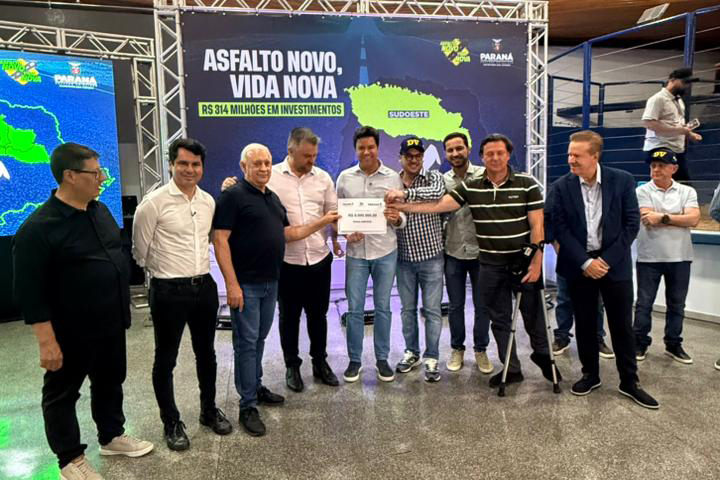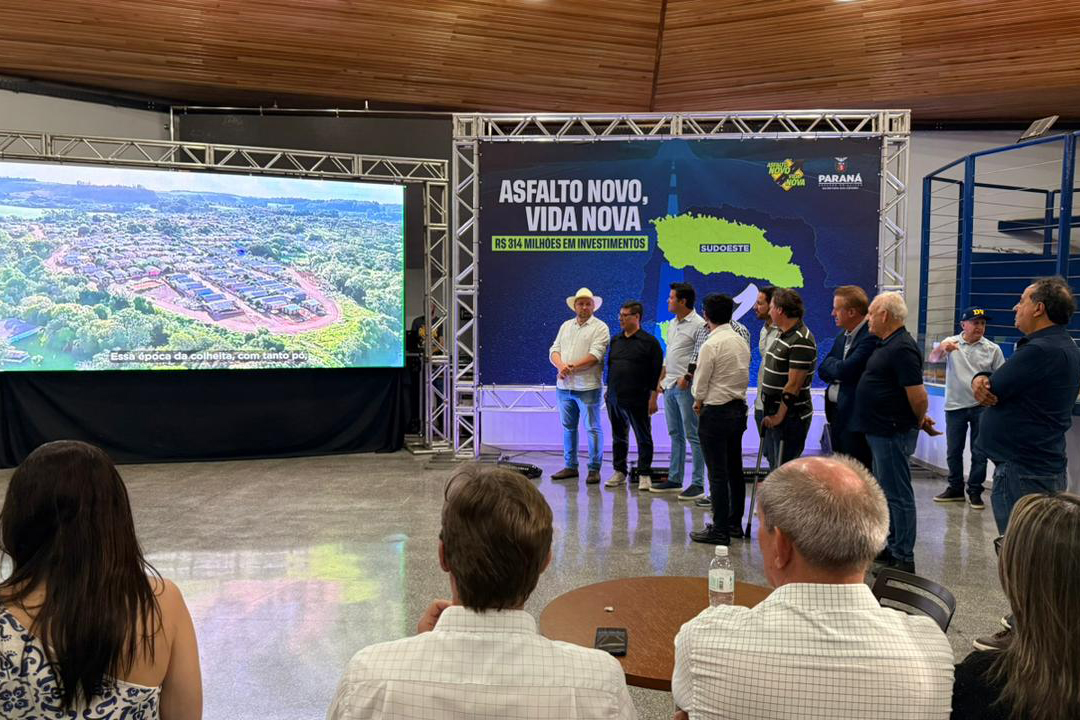O Governo do Paraná, por meio da Secretaria de Estado das Cidades (SECID), realizou na noite desta sexta-feira, 19, em Dois Vizinhos, voltado à Região Sudoeste, a assinatura de convênios do Programa Asfalto Novo, Vida Nova, cujo Agente Técnico Operacional do Programa, que faz análise do Projeto, supervisiona obras e auxilia nas questões jurídicas os agentes municipais, é o Paranacidade, vinculado à SECID. O evento, sediado no Parque de Exposições da Sociedade Rural Vale do Iguaçu, marcou um momento histórico para os 42 Municípios que integram a Associação dos Municípios do Sudoeste do Paraná (AMSOP), com a confirmação de investimentos que somam R$ 314 milhões, em mais de 50 projetos de Infraestrutura Urbana.