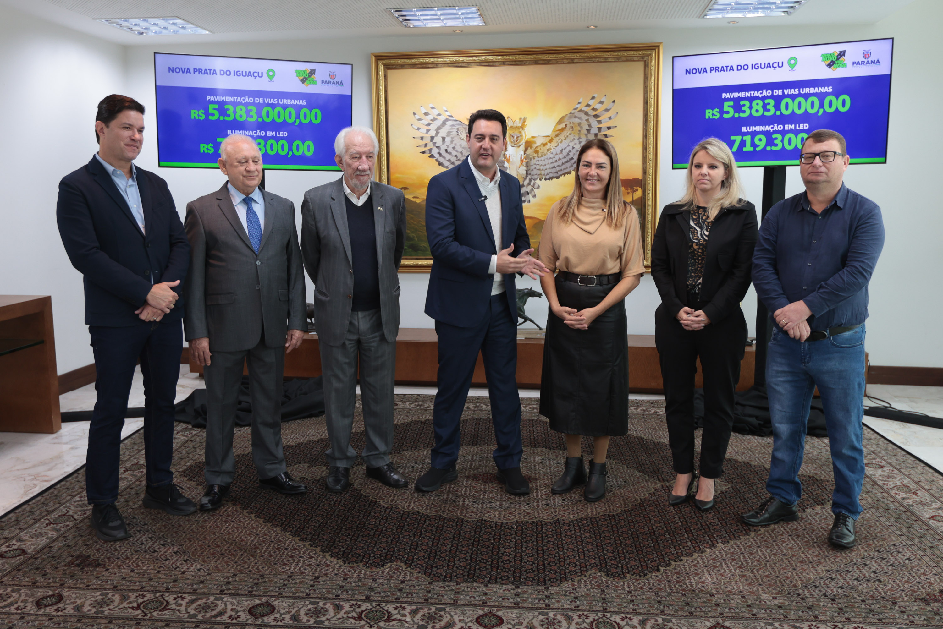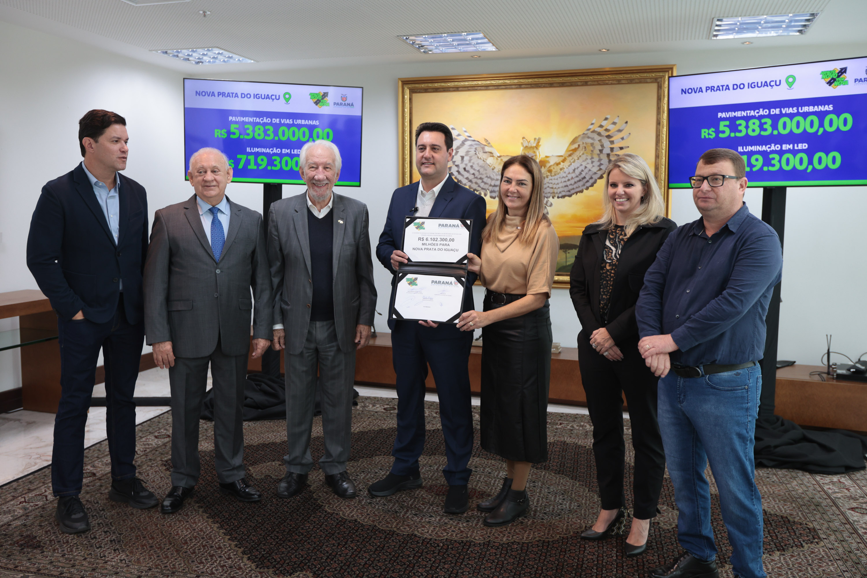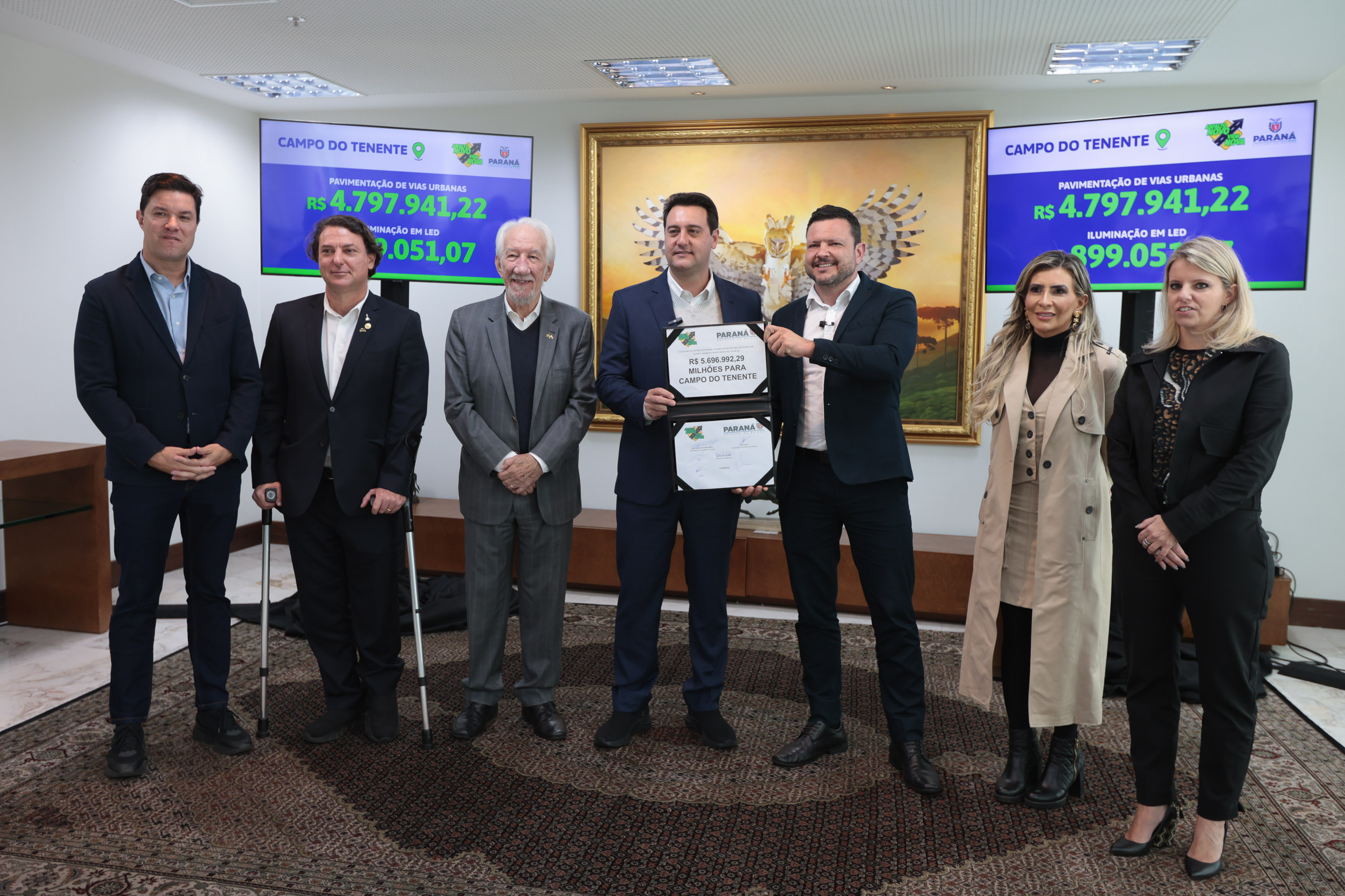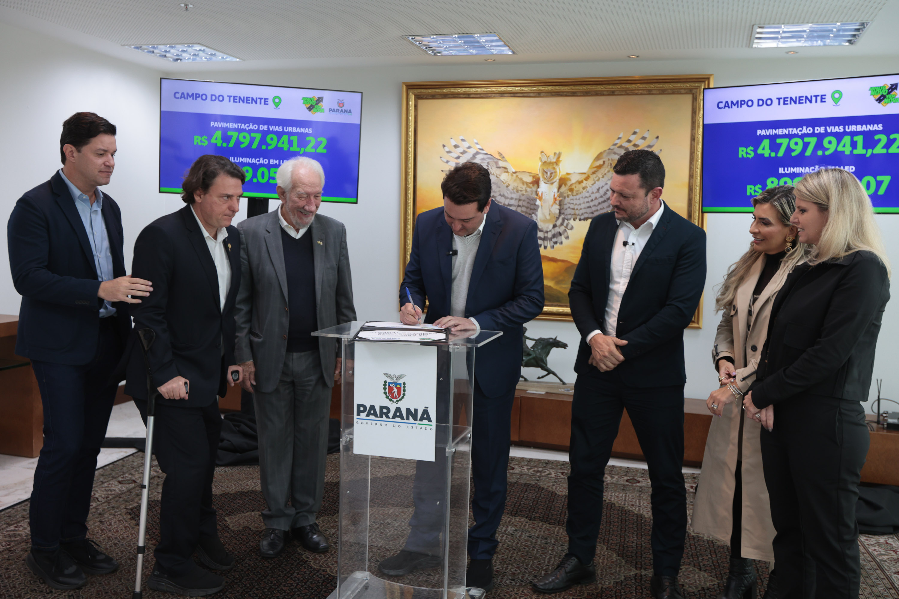 PRESENÇAS – Acompanharam as assinaturas o vice-governador Darci Piana; os secretários estaduais da Agricultura e do Abastecimento, Marcio Nunes; e do Trabalho, Qualificação e Renda, Do Carmo; a superintendente executiva do Paranacidade, Camila Mileke Scucato; e os deputados estaduais Hussein Bakri (líder do governo na Assembleia), Ademar Traiano, Gugu Bueno, Cobra Repórter, Artagão Júnior e Flávia Francischini.