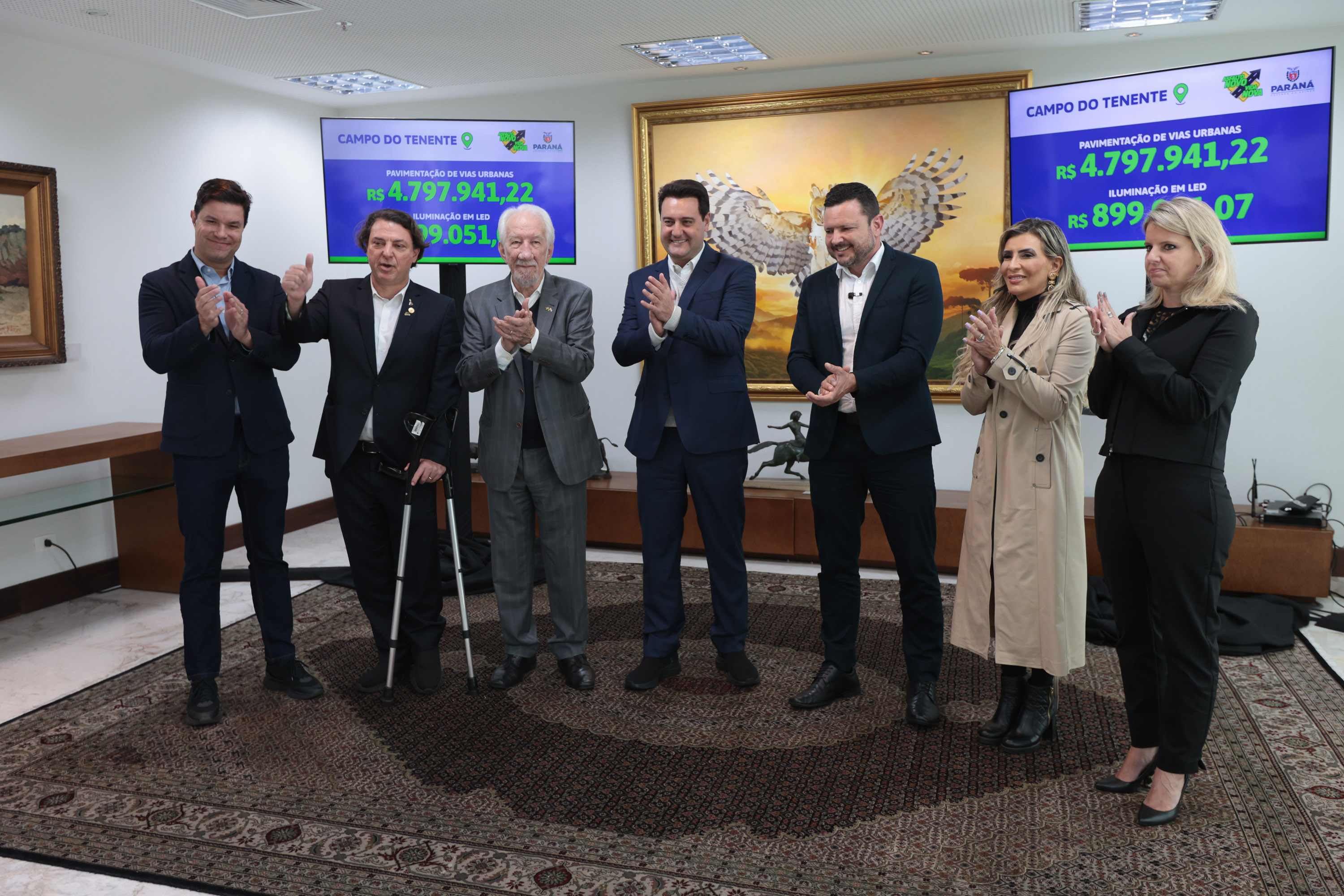 Além dessas cidades, também foram repassados R$ 5 milhões para a pavimentação em Ortigueira, nos Campos Gerais; R$ 4,8 milhões para Reserva do Iguaçu, sendo R$ 242 mil para iluminação e R$ 4,6 milhões para asfalto; R$ 5,3 milhões para Primeiro de Maio, dos quais R$ 286 mil para iluminação e R$ 5 milhões em pavimentação; R$ 2,5 milhões para Formosa do Oeste, sendo R$ 2,05 milhões para asfalto e R$ 439 mil para iluminação de LED; R$ 5,7 milhões para Campo do Tenente, dos quais R$ 899 mil são para iluminação e R$ 4,8 milhões para pavimentação; e R$ 1,8 milhão para Califórnia, sendo R$ 1,3 milhão para obras de asfalto e R$ 523 mil em iluminação pública.