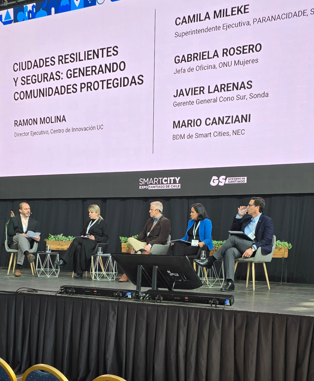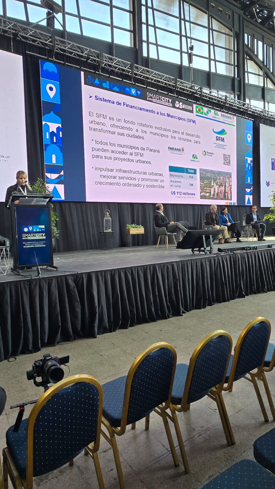 Depois de participar de um Painel na tarde desta quarta-feira, 23, das 15h50 até 16h40, no Hotel Majadas de Pirque, Região Metropolitana de Santiago do Chile, sobre se “Setores Rurais podem ser Territórios Inteligentes?”, a superintendente executiva do Paranacidade, Camila Mileke Scucato, fez parte da Plenária, que abriu os trabalhos da Smart City 2025, na Estação Mapocho, em Santiago do Chile, nesta quinta-feira, às 11h30. Com o tema “Cidades Resilientes e Seguras: gerando Comunidades Protegidas”, com o objetivo de “Recuperar a Cidade para as Pessoas, um Desafio Compartilhado”. Assim, Camila compartilhou a fala com o diretor executivo do Centro de Inovação UC, Ramon Molina; com a chefe da Oficina, ONU Mulheres, Gabriela Rosero; com o gerente geral Cone Sul, Sonda, Javier Larenas; e com o Bom de Smarty Cities, NEC, Mario Canziani. Camila discorreu sobre o tema, as dificuldades, as barreiras, a necessidade urgente de adaptações às mudanças climáticas e do uso de novas técnicas urbanas, com a promoção de Cidades Inteligentes, Conectadas e Resilientes , trabalhando para a redução das desigualdades urbanas. “É imperativo investir em planejamento a longo prazo para assegurar um futuro próspero e sustentável para todas as nossas comunidades, sem deixar ninguém para trás”, defendeu Camila.