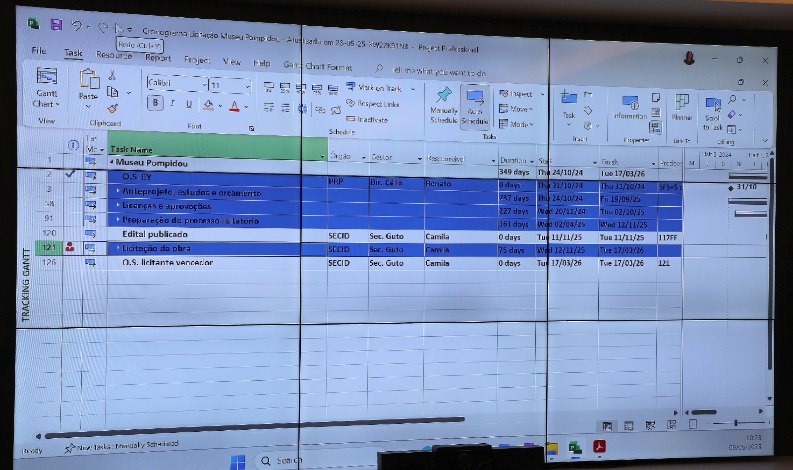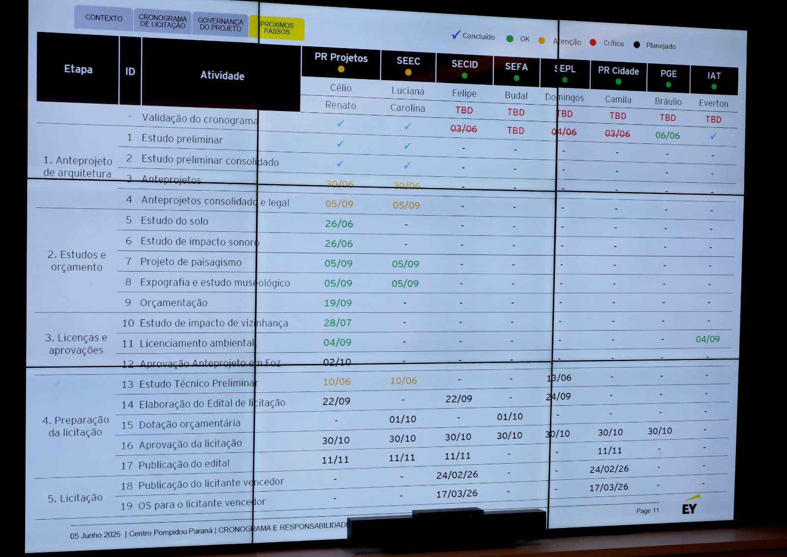 Representantes da empresa Ernst & Young, que faz gestão do processo do Projeto Museu Pompidou Paraná, se reuniram com profissionais e técnicos do Paranacidade, vinculado à Secretaria de Estado das Cidades (SECID), e da própria SECID, mais a superintendente executiva do Paranacidade, Camila Mileke Scucato, na manhã desta segunda-feira, 09, em Curitiba, para uma Reunião Técnica de Alinhamento sobre o Projeto Museu Pompidou do Paraná. “Discutimos tratativas operacionais do Projeto, de acordo com orientações da empresa, mas sem desviar os objetivos culturais”, explicou Camila. Ela ainda lembrou o que disse o próprio governador Ratinho Junior sobre o Museu. “Esta obra é um marco histórico, porque é o primeiro Museu Internacional na América Latina”, disse, na ocasião da assinatura do contrato, o próprio governador Ratinho Junior, em Paris.