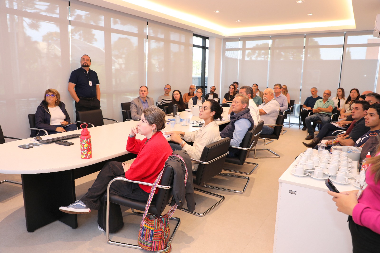 Após apresentar sua equipe, Camila mostrou os benefícios da ferramenta que cria um canal restrito de comunicação com os Municípios do Estado do Paraná e permite construir um acervo, de acesso público, relativo a documentos técnicos e legais de interesse comum, dos Munícipes e demais interessados, como a Pasta da Agricultura.