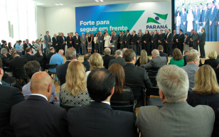 16:10 Em 30 dias, Estado confirma R$ 212 milhões para os municípios Em 30 dias, o Governo do Estado confirmou R$ 212 milhões para projetos e ações destinados a 304 municípios paranaenses. O desempenho do primeiro mês de governo foi apresentado nesta segunda-feira (07.05) durante reunião da governadora Cida Borghetti com prefeito