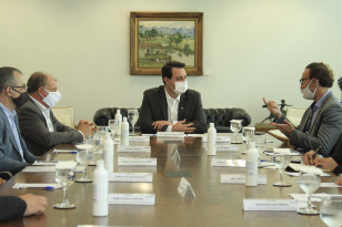 O governador Carlos Massa Ratinho Junior, o secretário do Desenvolvimento e de Obras Públicas (SEDU), João Carlos Ortega, e o superintendente executivo do Serviço Social Autônomo (Paranacidade, vinculado à SEDU), Álvaro Cabrini, participam nesta segunda-feira, 16, da Conferência Internaciona