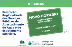 Após as Oficinas para a Capacitação de Gestores e Técnicos Municipais sobre a Prestação Regionalizada de Serviços Públicos de Abastecimento de Água e de Esgotamento Sanitário, realizadas hoje, terça-feira, 25, em Londrina, e na segunda-feira,24, em Curitiba, haverá mais três, para completar