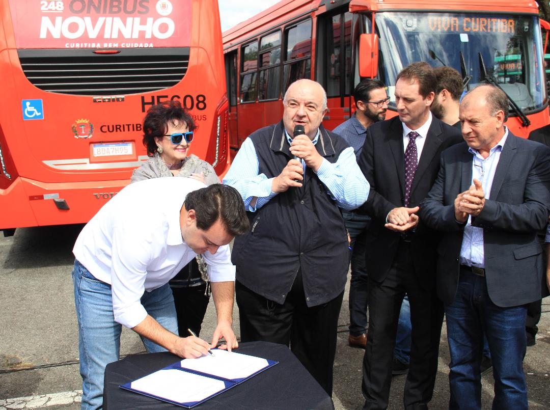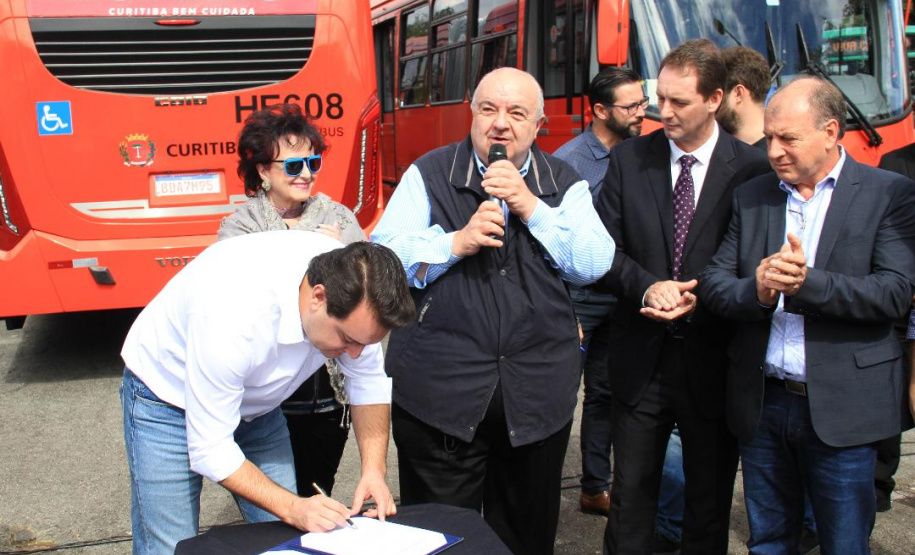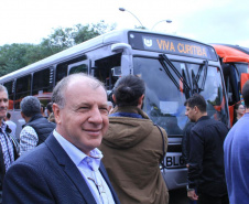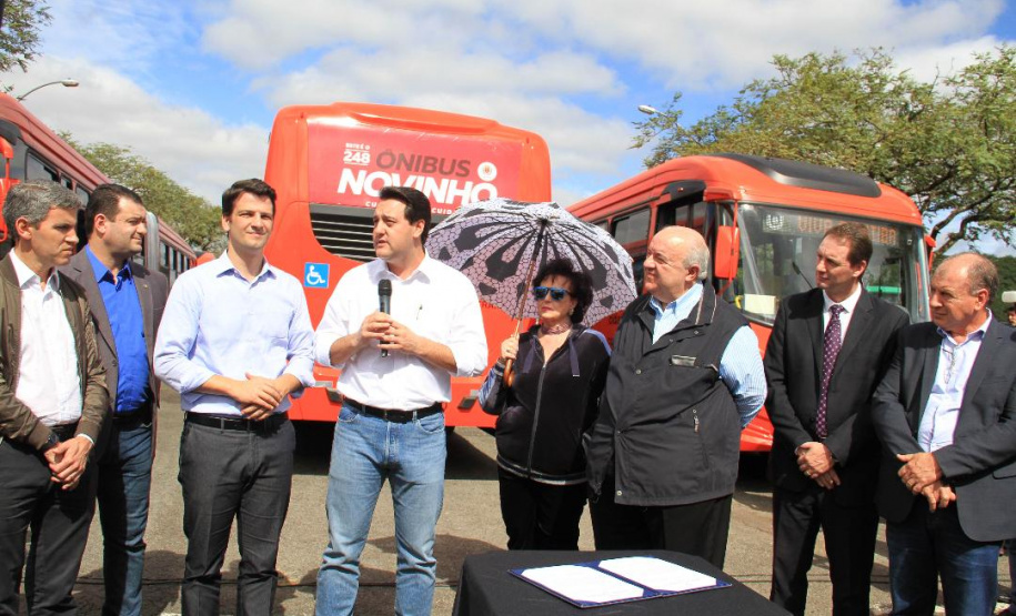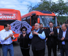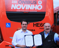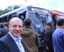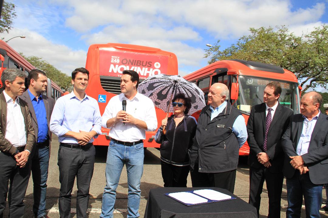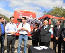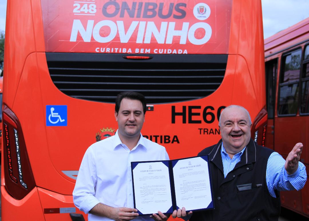 O repasse de R$ 40 milhões do Governo do Estado para subsidiar o transporte coletivo de Curitiba foi oficializado na manhã desta quinta-feira, 09, no estacionamento do Parque Barigui, na Capital. A solenidade contou com a presença do governador Carlos Massa Ratinho Junior, do secretário do Desenvolvimento Urbano, João Carlos Ortega, do presidente da COMEC, Gilson Santos e do prefeito de Curitiba, Rafael Greca de Macedo, além de empresários e trabalhadores do setor.