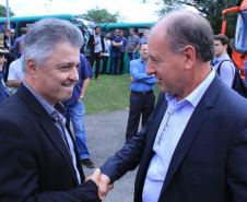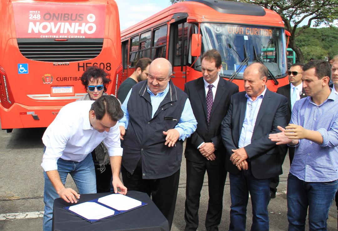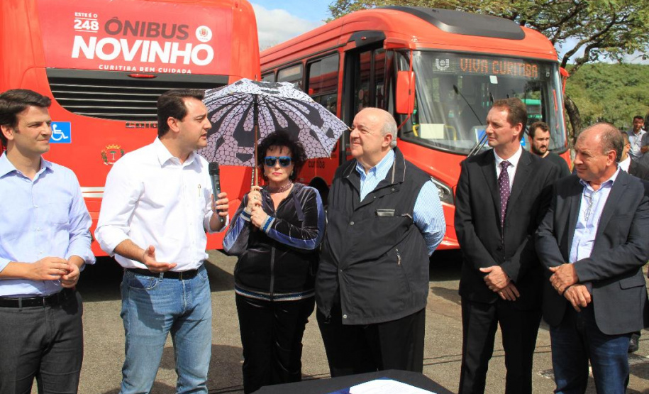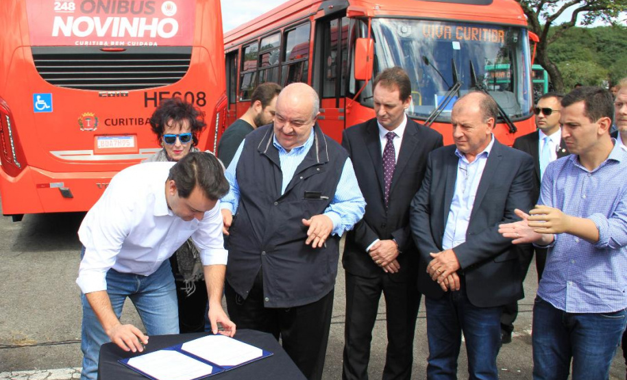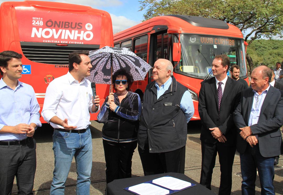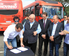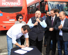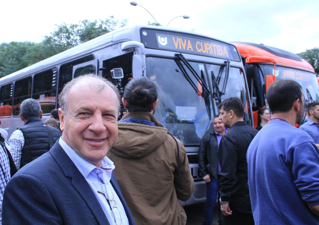 O repasse de R$ 40 milhões do Governo do Estado para subsidiar o transporte coletivo de Curitiba foi oficializado na manhã desta quinta-feira, 09, no estacionamento do Parque Barigui, na Capital. A solenidade contou com a presença do governador Carlos Massa Ratinho Junior, do secretário do Desenvolvimento Urbano, João Carlos Ortega, do presidente da COMEC, Gilson Santos e do prefeito de Curitiba, Rafael Greca de Macedo, além de empresários e trabalhadores do setor.