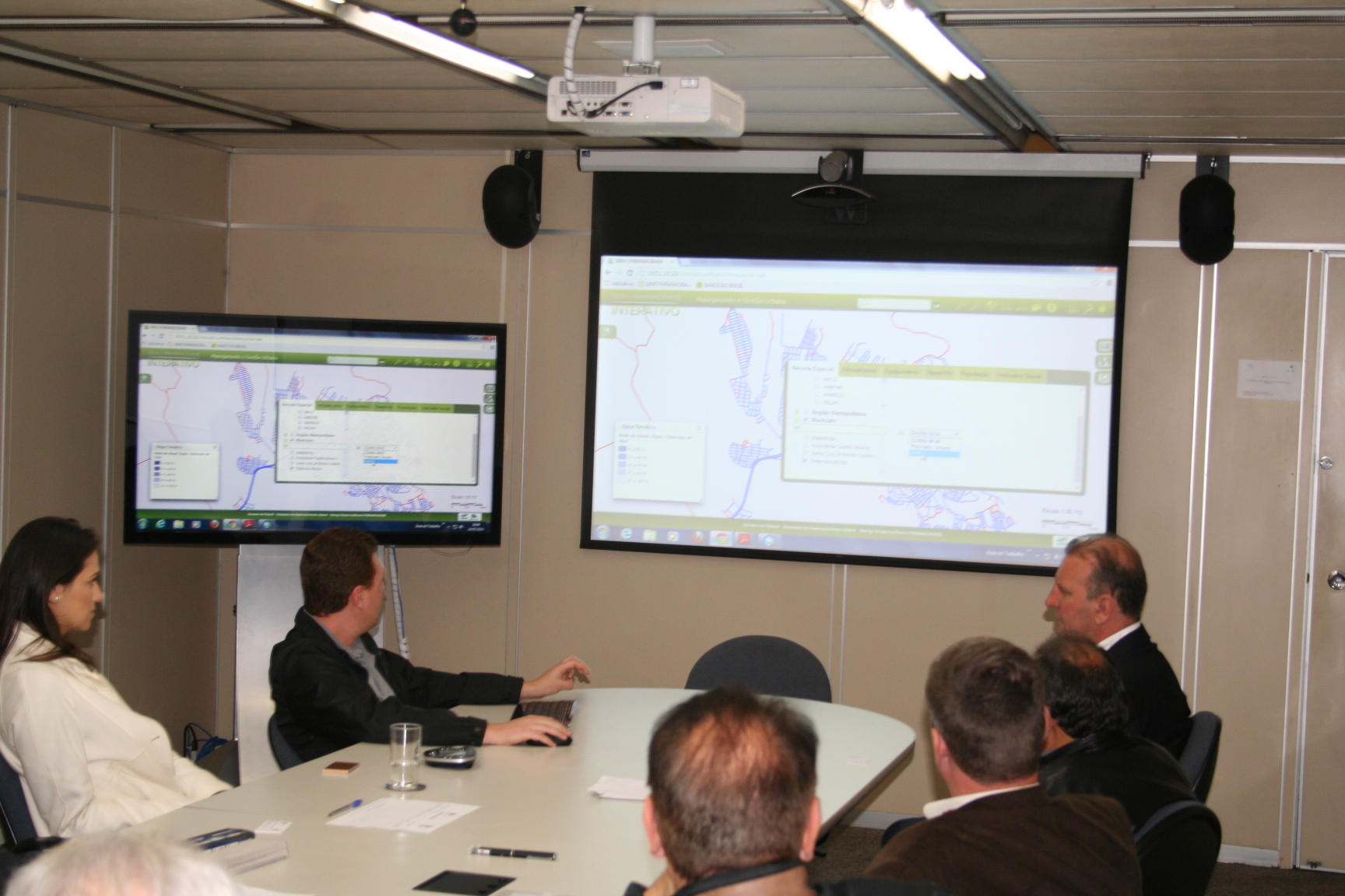 Nesta quinta-feira, 24, coordenadores e técnicos da Secretaria de Desenvolvimento Urbano (SEDU) e do Serviço Social Autônomo (Paranacidade) apresentaram à equipe da Associação dos Municípios do Campos Gerais (AMCG), representada por seu presidente e prefeito de Carambeí, Osmar José Chinato, o SEDU/Paranacidade Interativo. A iniciativa de conhecerem o sistema partiu dos prefeitos da região, que procuraram a equipe SEDU/Paranacidade e se mostraram interessados em implantar o sistema em todos os 18 municípios dos Campos Gerais.
