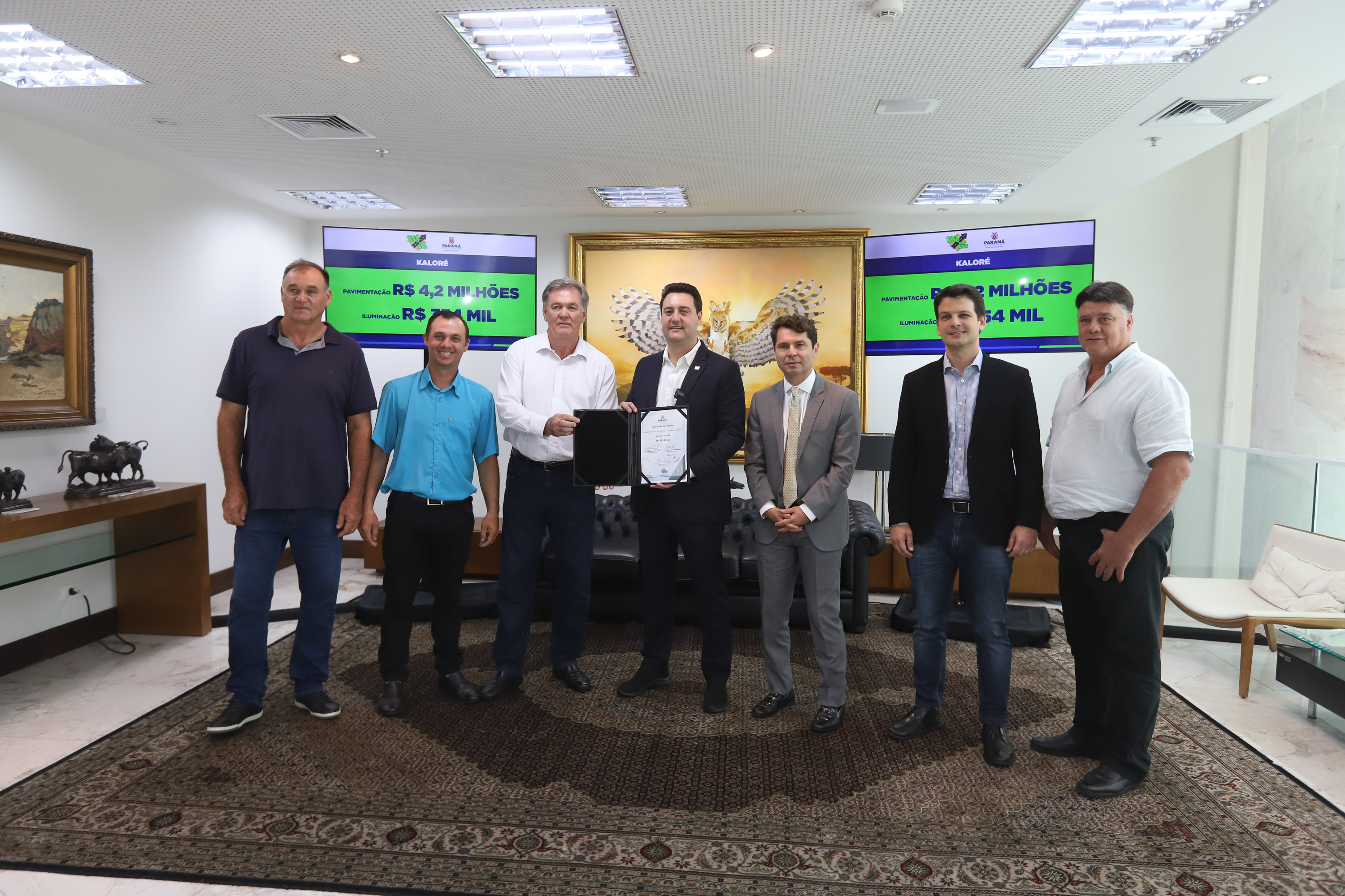 KALORÉ – Outro município do Noroeste, Kaloré recebeu do Governo do Estado R$ 4,2 milhões para pavimentação asfáltica e mais R$ 354 mil para iluminação pública em LED. De acordo com o prefeito Edmilson Luis Stencel, o montante será aplicado em ruas do perímetro urbano e no distrito de Juciara. “Agora a cidade não vai ficar com um palmo sem asfalto e sem um poste sem iluminação LED”, destacou.