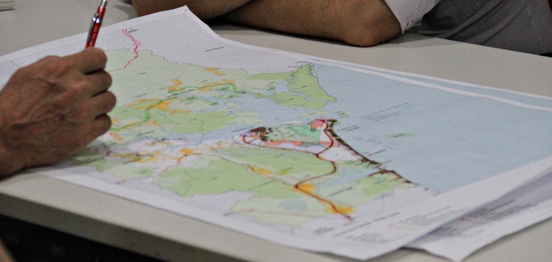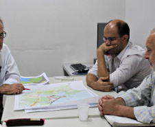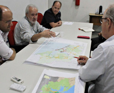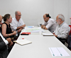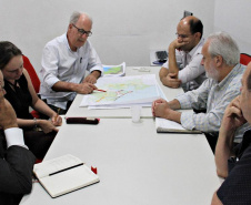 Integrantes do grupo de trabalho na elaboração do Plano para o Desenvolvimento Sustentável do Litoral do Paraná estiveram reunidos nesta semana, no mini-auditório do Palácio das Araucárias, em Curitiba, para discutirem as propostas do macrozoneamento daquela Região. Eles falaram sobre a oportunidade e o local para implantar a Faixa de Infraestrutura, opções para ampliar a capacidade do transporte ferroviário, novas alternativas para o transporte rodoviário e possíveis delimitações para a expansão das áreas urbanas. De acordo com o analista de desenvolvimento municipal do Serviço Social Autônomo (Paranacidade), o geógrafo Carlos Storer, “o documento final deverá servir para orientar o crescimento da região pelos próximos 30 anos e de forma sustentável”