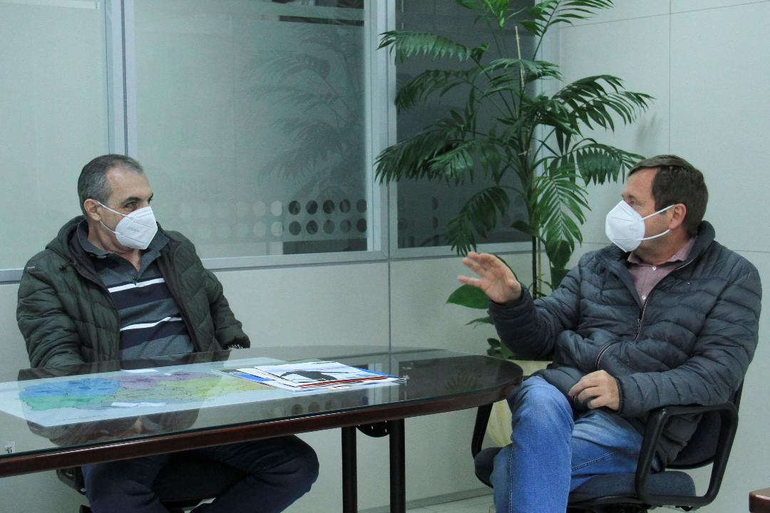 O superintendente executivo do Paranacidade, Álvaro Cabrini, recebeu nesta sexta-feira, 06, o presidente do Conselho Federal de Engenharia e Agronomia (CONFEA) e ex-presidente do Conselho Regional de Engenharia e Agronomia do Paraná do (CREA/PR), Joel Krüger.