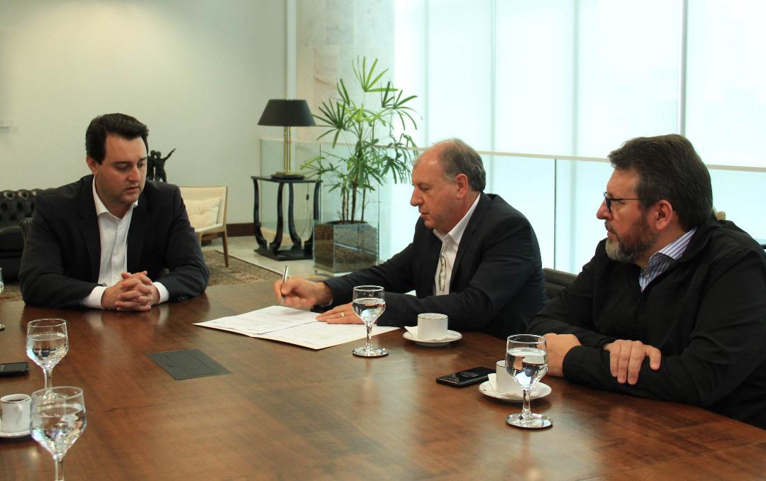 O governador Carlos Massa Ratinho Junior e o secretário do Desenvolvimento Urbano e de Obras Públicas, e também Superintendente do Serviço Social Autônomo (Paranacidade), João Carlos Ortega, assinaram na tarde desta terça-feira, 15, no Palácio Iguaçu, o Termo de Ratificação de Contrato de Financiamento firmado entre o Banco Regional de Desenvolvimento do Extremo Sul (BRDE) e a Prefeitura de Campina Grande do Sul. O documento, no valor total de R$ 4.680.884,38, sendo R$ 234.044,22 de contrapartida Municipal, viabiliza a execução de obras de pavimentação de uma área de 25.171,91 m² em diversas vias daquele Município.