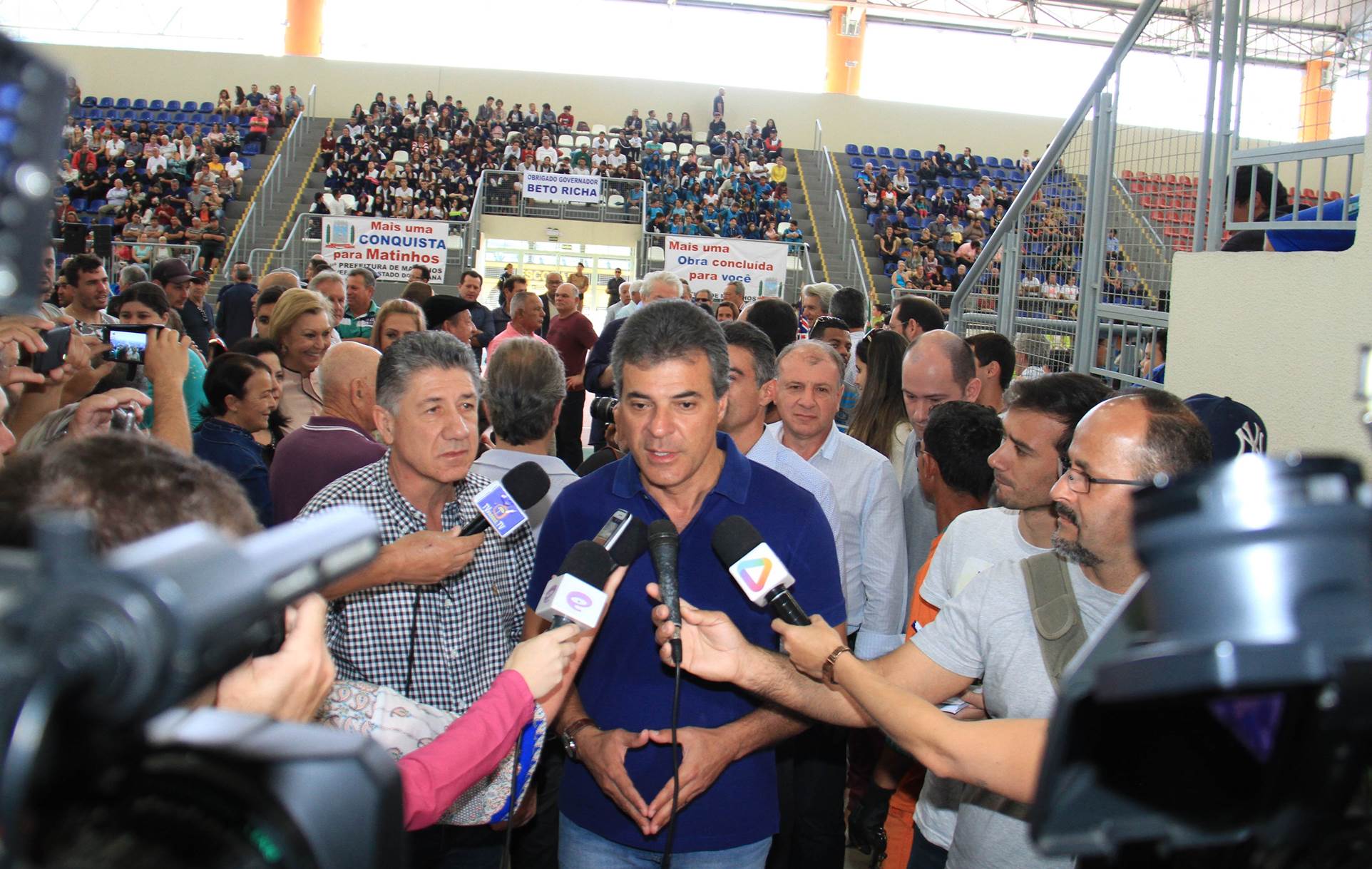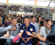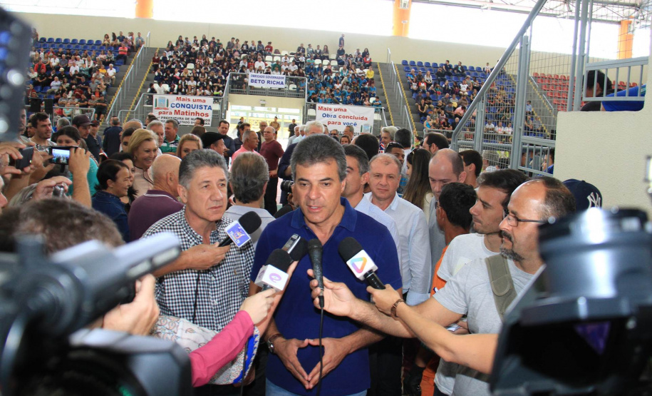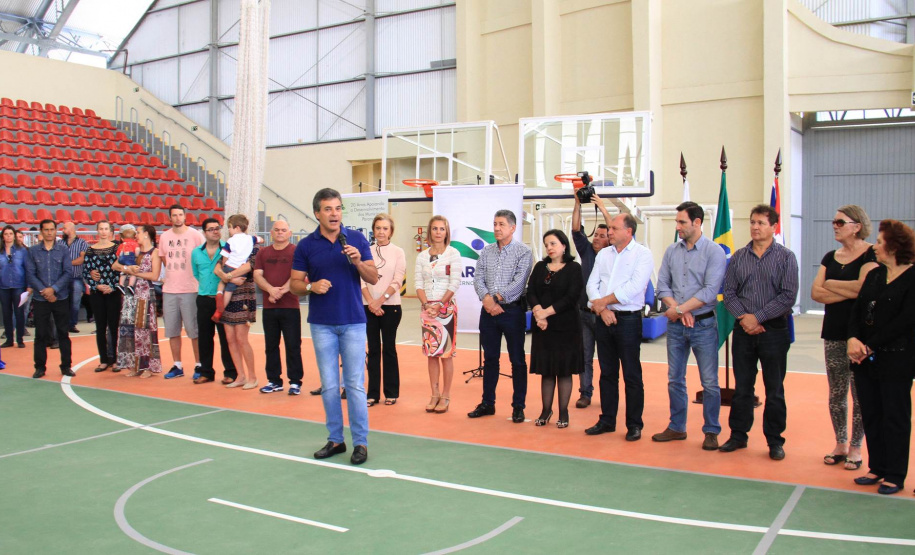 O governador Beto Richa inaugurou nesta quinta-feira, 08, a Arena Vicente Luiz Gurski - o Cascatão -, em Matinhos, no Litoral do Estado. As obras do ginásio estavam paradas há 16 anos. O Governo do Estado, por meio do Sistema de Financiamento aos Municípios (SFM), da Secretaria de Estado do Desenvolvimento Urbano (SEDU), liberou R$ 3,1 milhões e o município entrou com contrapartida de pouco mais de R$ 252 mil. “Durante mais de 15 anos as obras paralisadas envergonhavam a cidade. Mas, agora, é o Cartão Postal de Matinhos, dando oportunidades de transformar a vida de crianças e adolescentes por meio do esporte”, disse o secretário em exercício da SEDU, João Carlos Ortega.