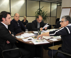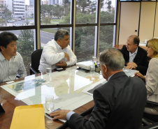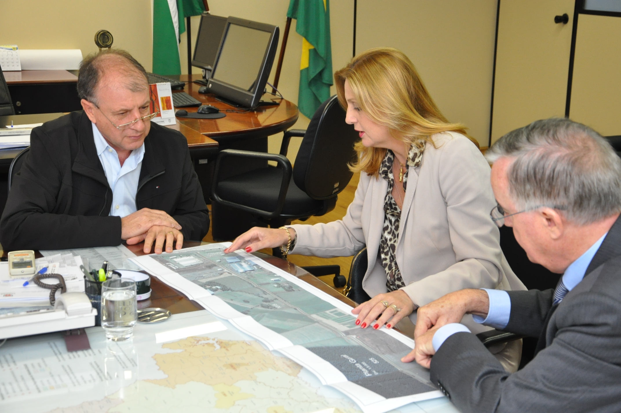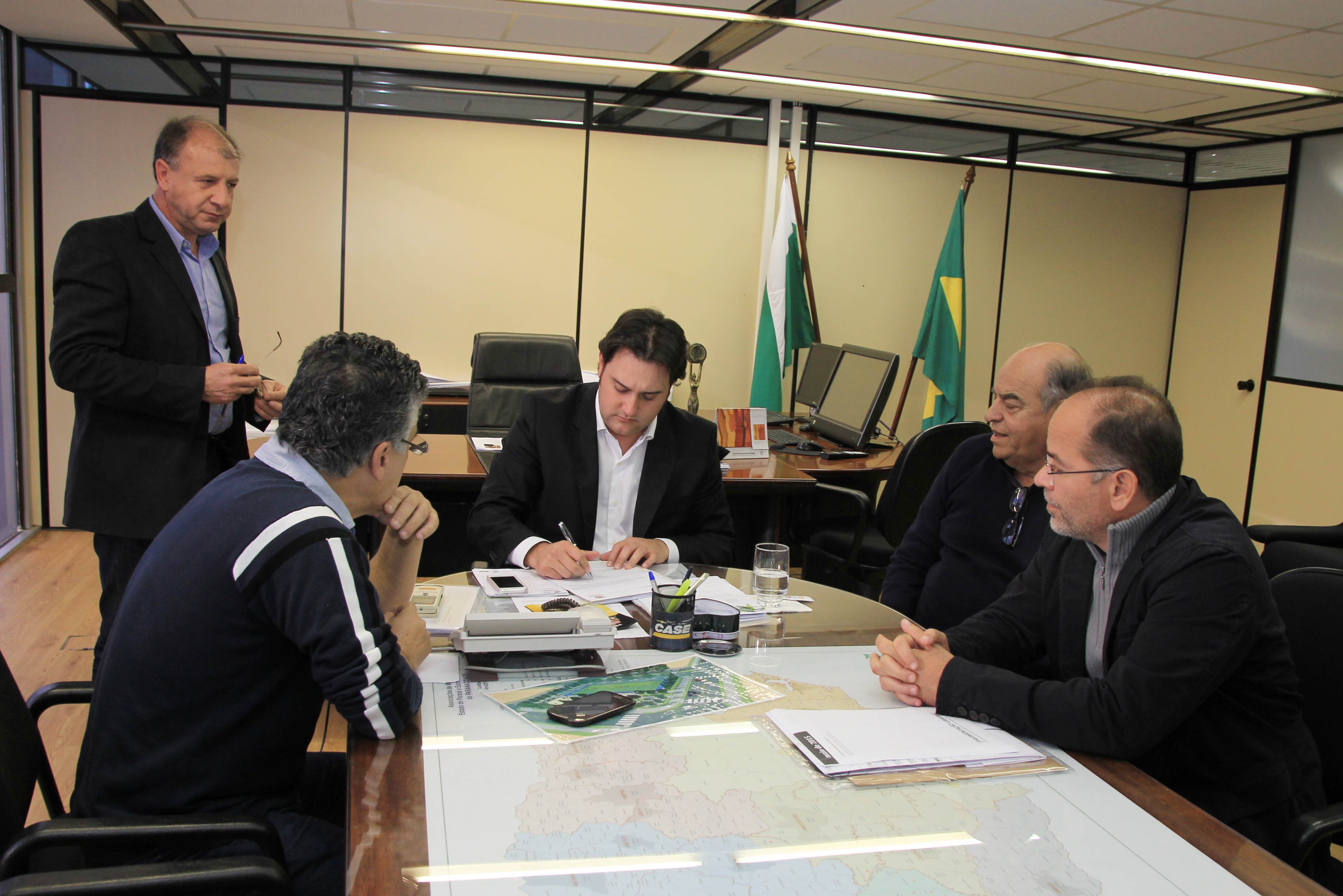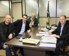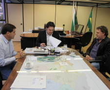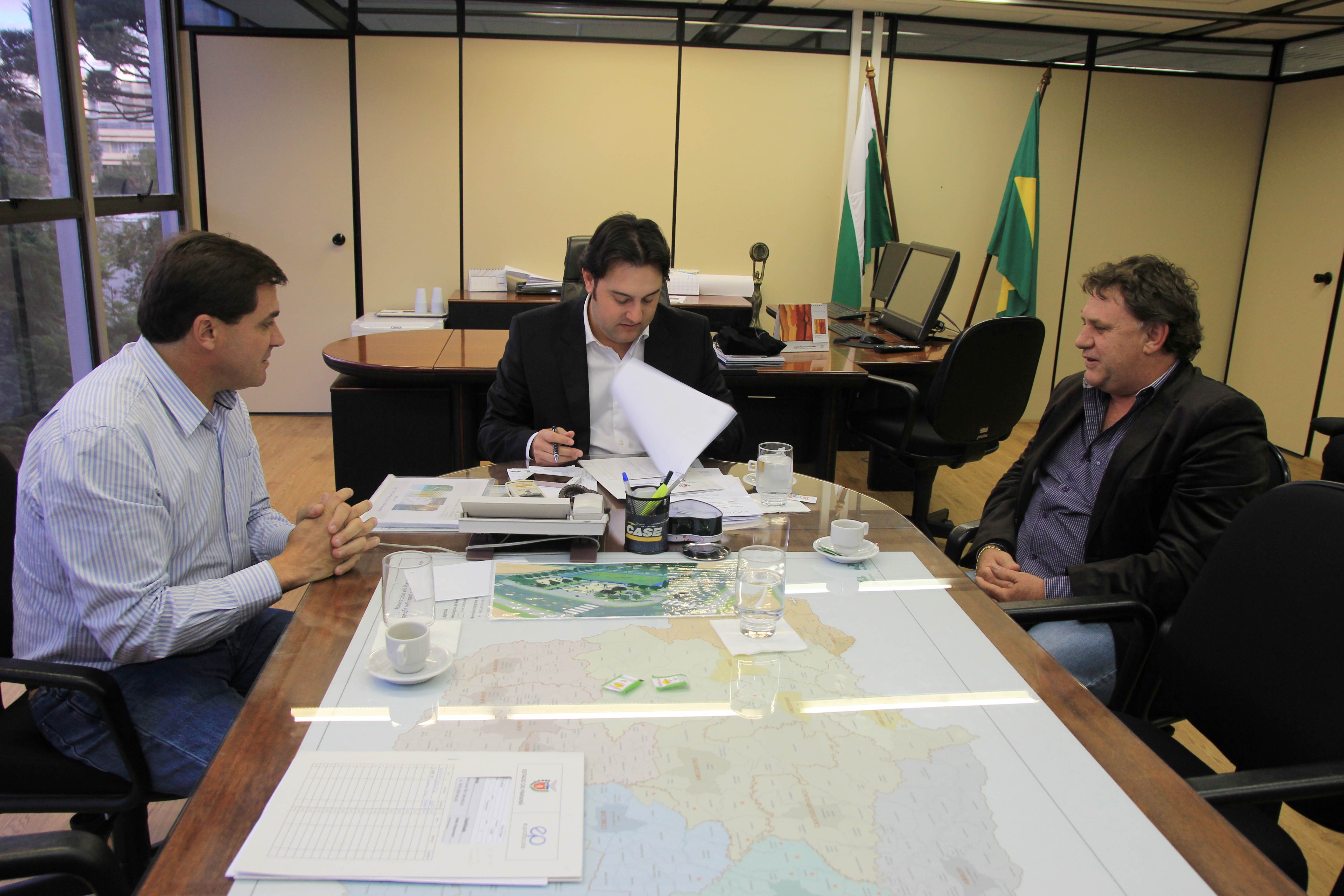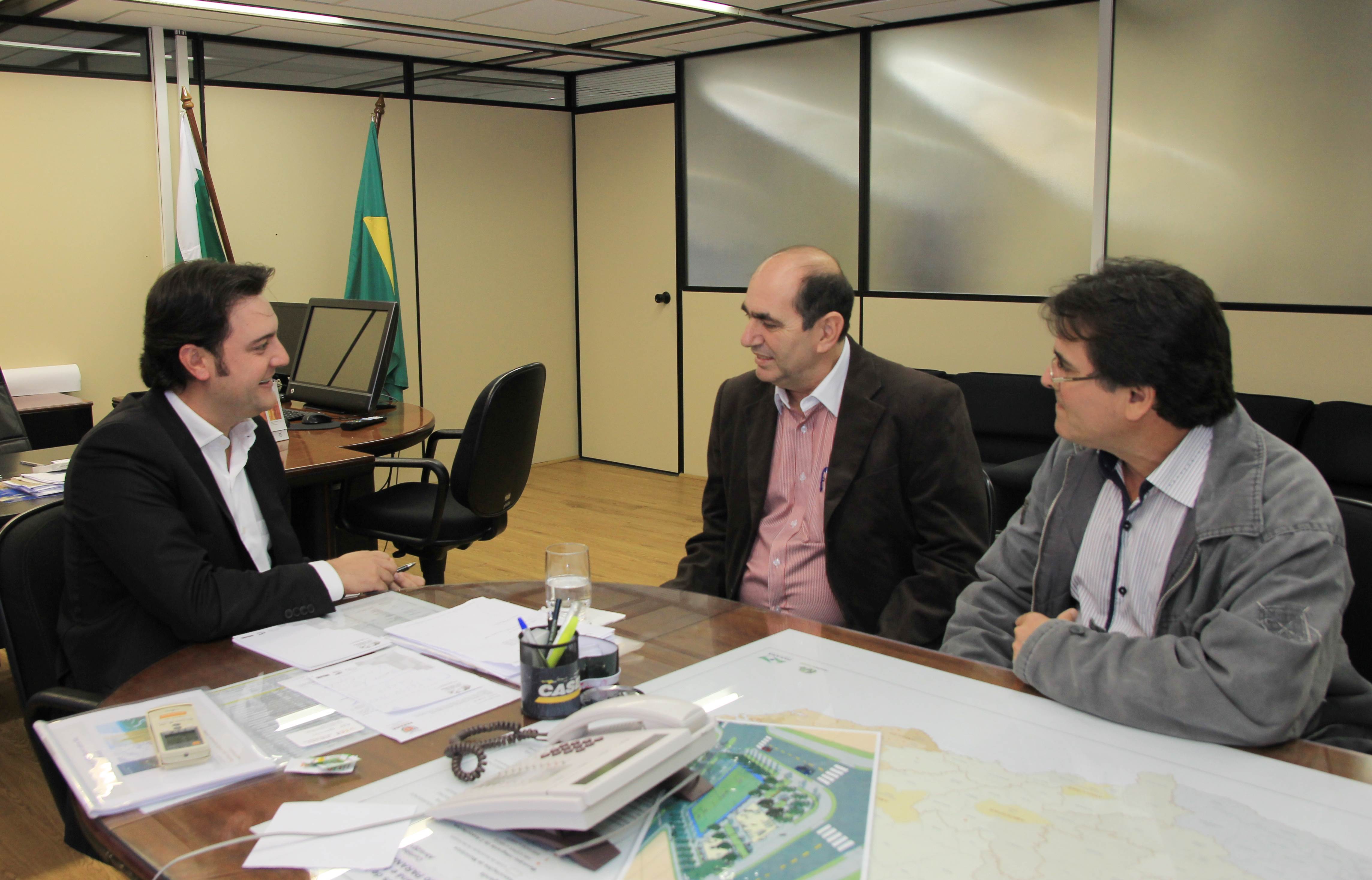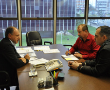 Nesta semana, o secretário do Desenvolvimento Urbano (SEDU), Ratinho Junior, e o diretor geral, João Carlos Ortega, se dividiram no atendimento aos prefeitos. Ortega recebeu a prefeita de Campo Mourão, Regina Dubay, acompanhada do superintendente administrativo da Agroindústria Cooperativa Coamo, Antonio Sérgio Gabriel. A questão levantada pela prefeita e pelo representante da Coamo diz respeito a uma estrada de 2,1 km, pertencente à Cooperativa, mas que é usada como servidão pela comunidade e precisa ser asfaltada. A solução encontrada por ambos passa pela doação da estrada ao município que poderá, então, arcar com as despesas do asfalto, por meio de financiamento pelo Banco Regional de Desenvolvimento do Extremo Sul (BRDE). Ratinho Junior e Ortega concordam com a solução e oferecem seu apoio.