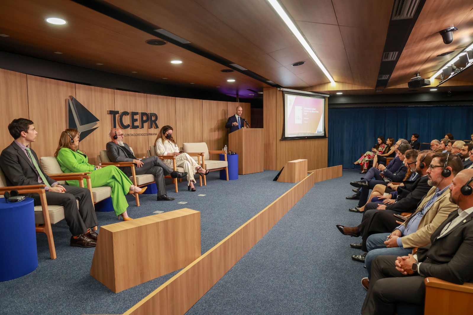 O encontro acontece no Auditório do Tribunal de Contas do Paraná, em Curitiba. Piana, Pimentel e outras autoridades receberam o Relatório realizado por representantes dos setores público e privado produtivo, academia e sociedade civil que participaram da segunda fase do Programa “Uma Abordagem Territorial aos ODSs realizada em 2023.