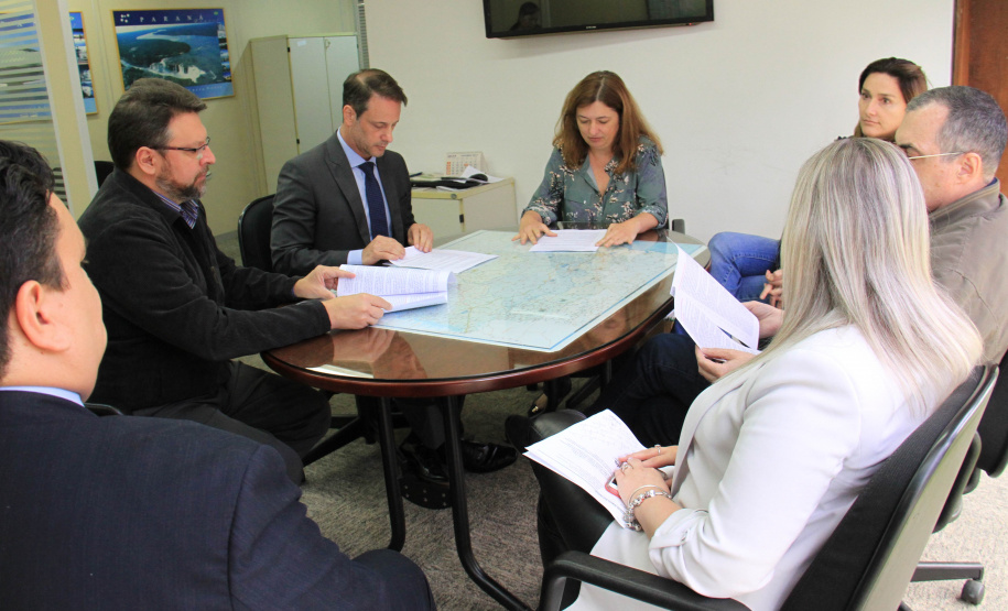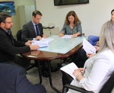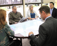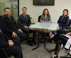 No encontro com o superintendente executivo do Paranacidade estavam os diretores de Operações, Álvaro José Cabrini Júnior, e o de Administração e Finanças, Claudio Stabile;