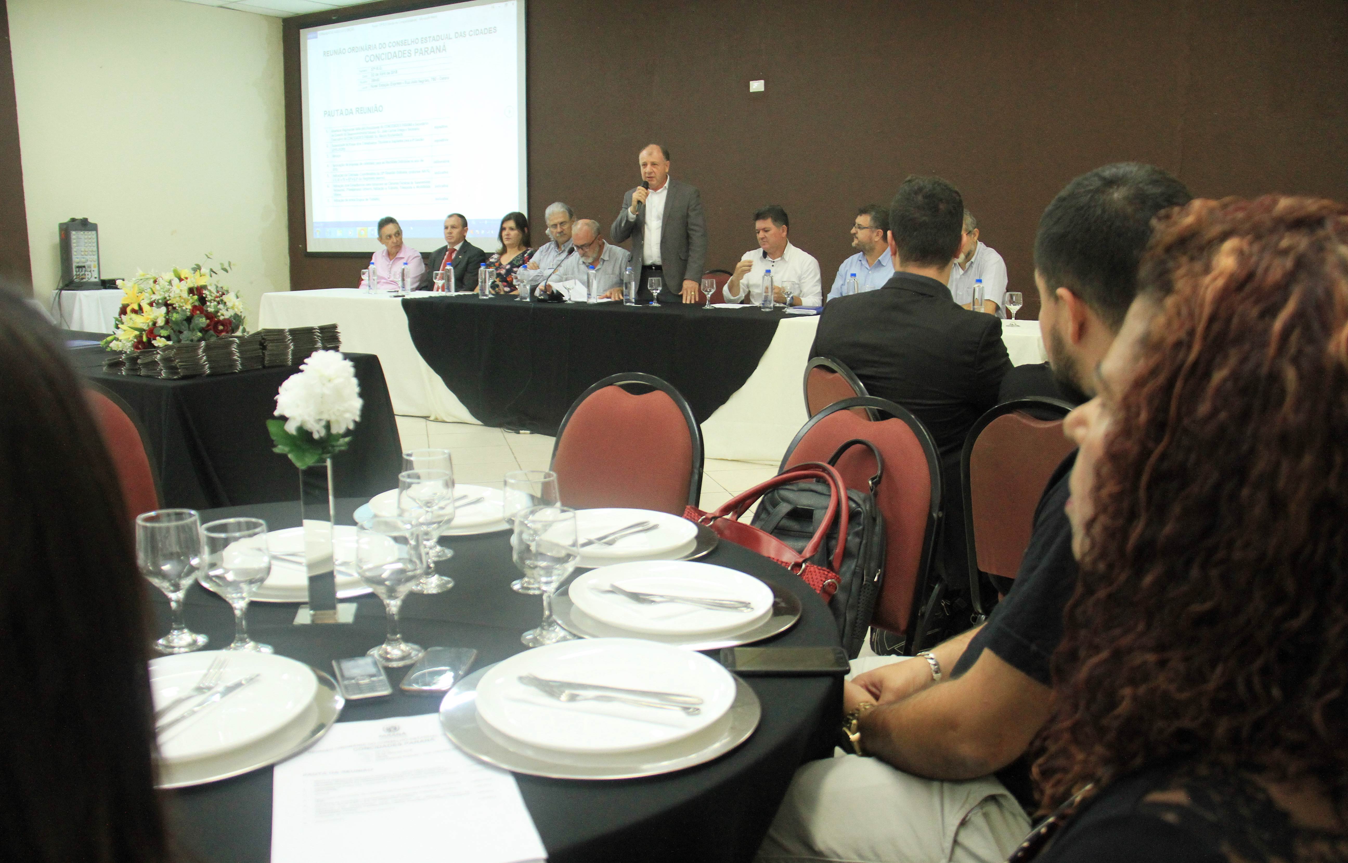 Os novos membros do Conselho Estadual das Cidades (ConCidades/PR) tomaram posse nesta segunda-feira, 02, durante a realização da 37a Reunião Ordinária, no Hotel Estação Express, em Curitiba. O evento começou às 9 horas, com a presença do presidente da entidade e também secretário de Estado do Desenvolvimento Urbano, João Carlos Ortega. Ele deu as boas vindas aos presentes e desejou um bom mandato à nova gestão. “Além de agradecer a cada um, representantes de entidades de classe, de movimentos sociais e da nossa sociedade, eu afirmo que estar com vocês neste período, foi muito gratificante e um grande aprendizado. Juntos, pudemos debater e aprovar tópicos que resultaram em melhorias para a vida da nossa gente”, disse.