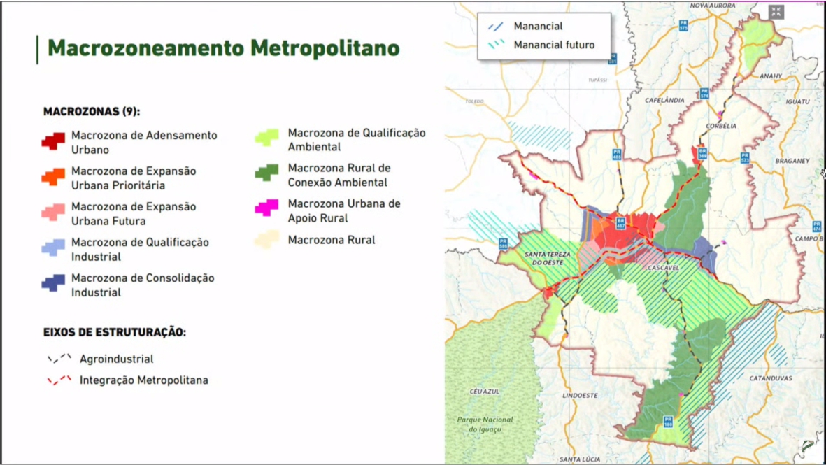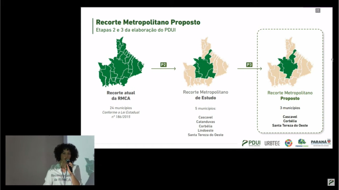 O Relatório Final do PDUI da Região Metropolitana de Cascavel foi apresentado nesta quarta-feira,12, com as Propostas Consolidadas para promover o desenvolvimento urbano integrado dos municípios que farão parte da RMCA. O Recorte Metropolitano proposto, pela Consultoria URBTEC, evidencia que, dos 24 Municípios que integram a Região atuamente, há funções públicas de interesse comum em apenas três desses Municípios: Cascavel, Corbélia e Santa Tereza do Oeste. A apresentação aconteceu no Auditório II, na UNIOESTE, na Rua Universitária, 2.069, em Cascavel. O documento será encaminhado à Agência de Assuntos Metropolitanos do Estado do Paraná (e passar pela aprovação da Assembleia Legislativa do Paraná.