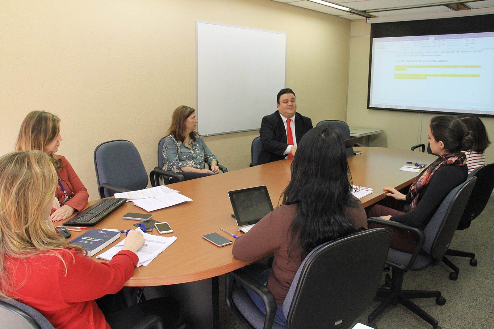 Presidido pelo advogado Raul Clei Coccaro Siqueira, com a presença das Conselheiras Nayana Frontera Fabro Dias; Patricia Brochado Barreto; Rosana de Fátima Menarin; Vilma Regina Gonçalves Dias, todas advogadas. E, ainda, com a participação da Analista de Desenvolvimento Municipal Silvana Aparecida dos Anjos e da Secretária Adriana de Fátima Schweiger. Após intensa analise e discussão, o grupo elaborou a proposta de Cláusula Anticorrupção que deverá constar dos novos editais de licitação a serem assinados, pelos gestores públicos, em obras, serviços e ações contempladas pela SEDU/Paranacidade, no Governo do Paraná.