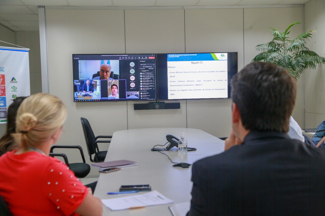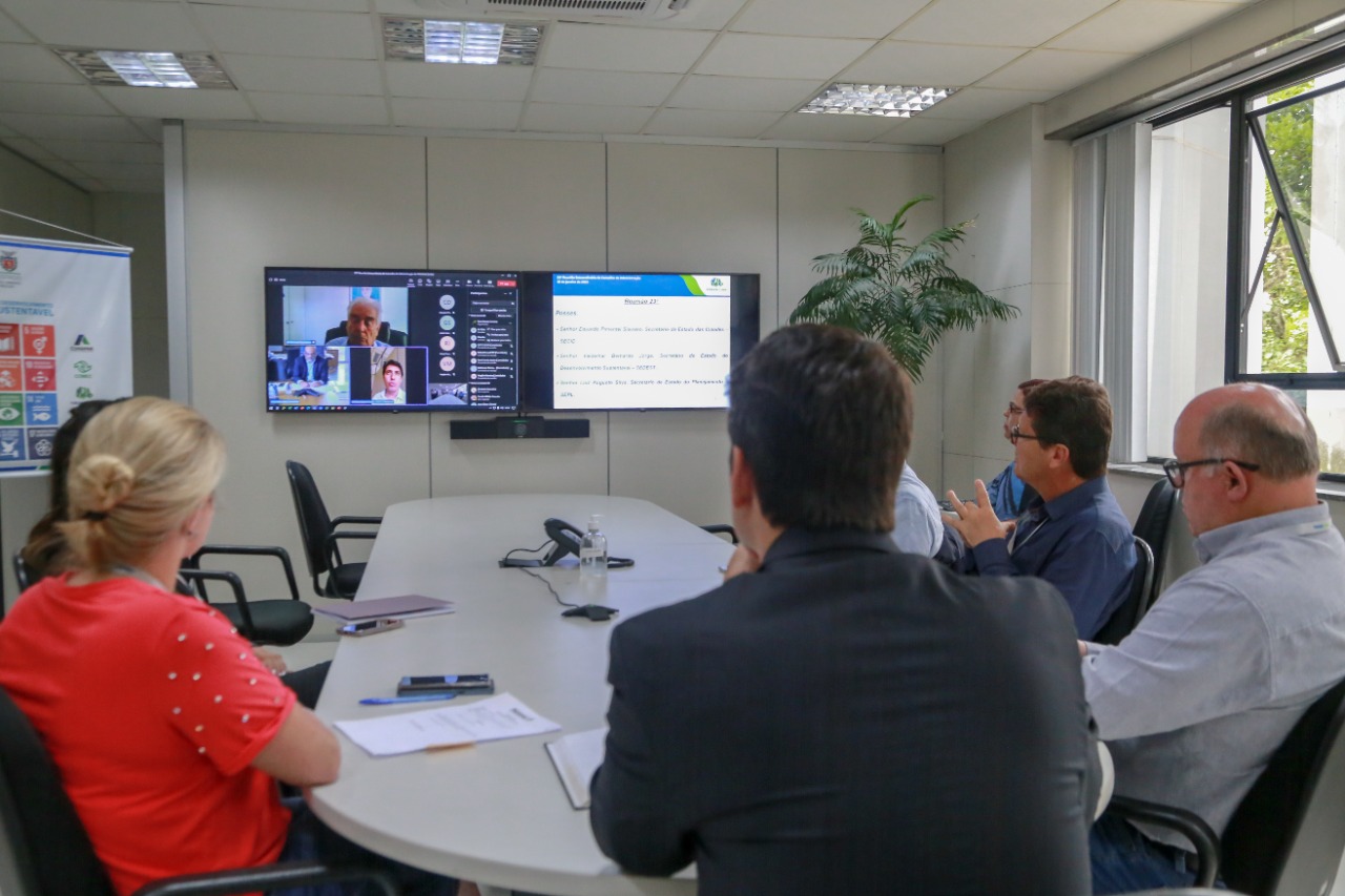 O secretário de Estado das Cidades – SECID -, Eduardo Pimentel Slaviero, tomou posse nesta quarta-feira, 18, como membro honorário do Conselho de Administração do Serviço Social Autônomo – Paranacidade. Junto com ele também assumiram os secretários de Estado do Planejamento, Guto Silva, e do Desenvolvimento Sustentável, Valdemar Bernardo Jorge, como dispõe o Art. 2, do parágrafo 2, da Lei 15.211/2006. Em ambiente virtual e presencial, esta, a 23ª Reunião Extraordinária do Conselho de Administração, foi aberta e presidida pelo secretário da Fazenda, Renê de Oliveira Garcia Junior. Após ser empossado, Eduardo Pimentel cumprimentou e agradeceu a todos os conselheiros. “Ao lado de todos, pretendo dar a mesma agilidade e, ao mesmo tempo, fortalecer a Secretaria das Cidades e o Paranacidade, como determina o governador Ratinho Junior”, enfatizou.