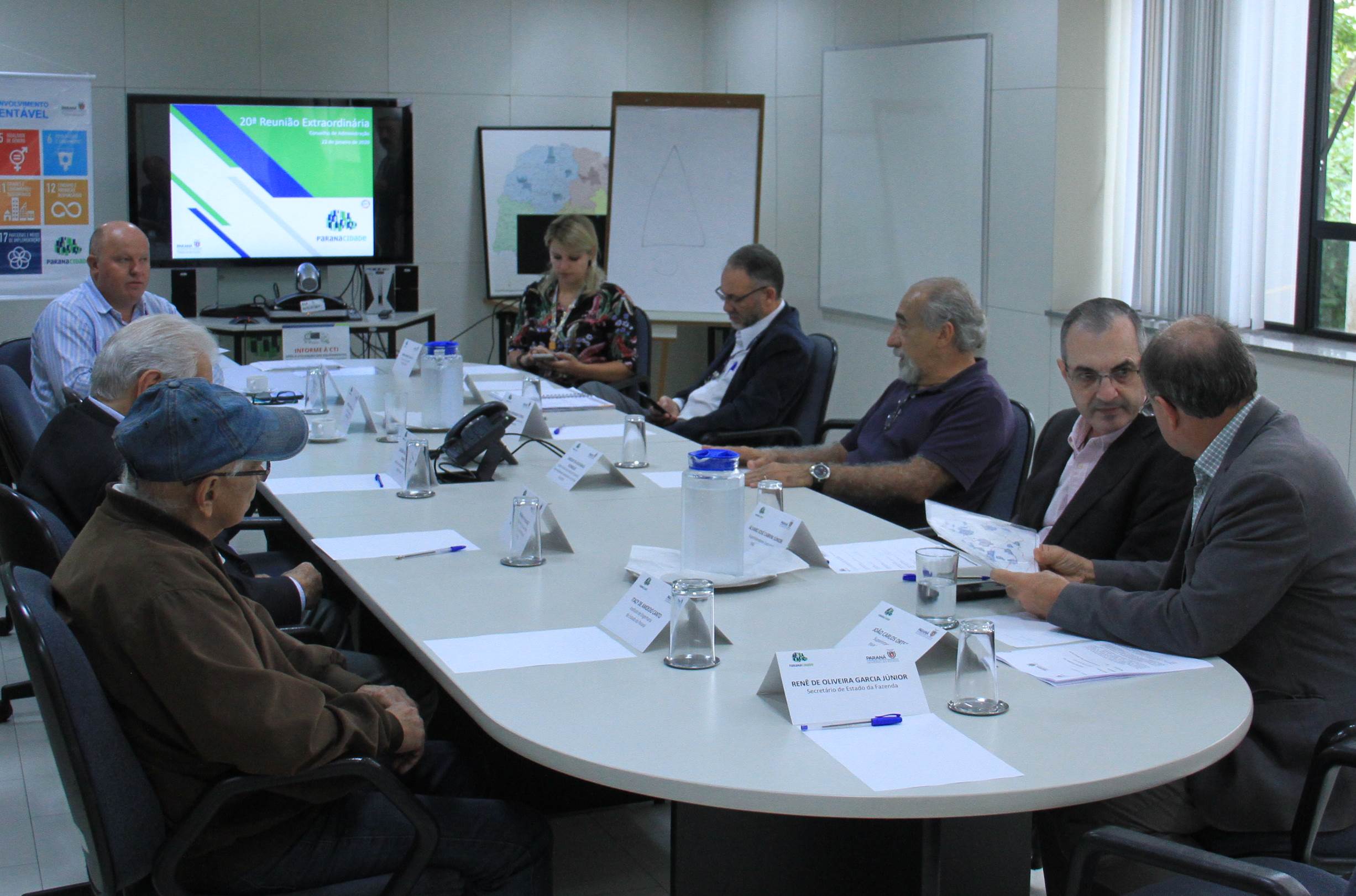 Secretários de Estado, membros natos e efetivos, foram recebidos pelo membro honorário, secretário de Estado do Desenvolvimento Urbano e de Obras Públicas (SEDU) e superintendente do Paranacidade, João Carlos Ortega, na Sala de Conselho, no Palácio das Araucárias. O presidente nato do Conselho, secretário da Fazenda do Paraná, Renê de Oliveira Garcia Júnior, presidiu a 20ª Reunião Extraordinária. Após relatos técnicos, administrativos e jurídicos, feitos pelos profissionais responsáveis, a pauta teve a aprovação unânime dos presentes.