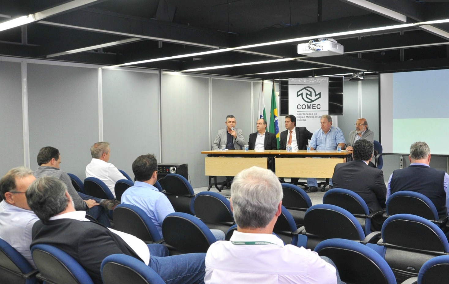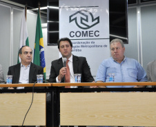A necessidade de uma revisão estratégica da Coordenação da Região Metropolitana de Curitiba (COMEC) reuniu nesta semana os Conselhos Deliberativo e Consultivo da entidade no auditório da Secretaria do Desenvolvimento Urbano (SEDU). O encontro foi presidido pelo secretário do Desenvolvimento Urbano, Ratinho Júnior, com a presença de diversos prefeitos da RMC. “Torna-se uma prioridade devolver a COMEC ao seu patamar de importante órgão de planejamento das funções públicas, com interesse comum ao desenvolvimento dos municípios da Região Metropolitana de Curitiba. E sempre respeitando o Estatuto da Metrópole”, disse Ratinho Junior, ao convocar a parceria pensante dos gestores públicos, em favor das demandas da população.