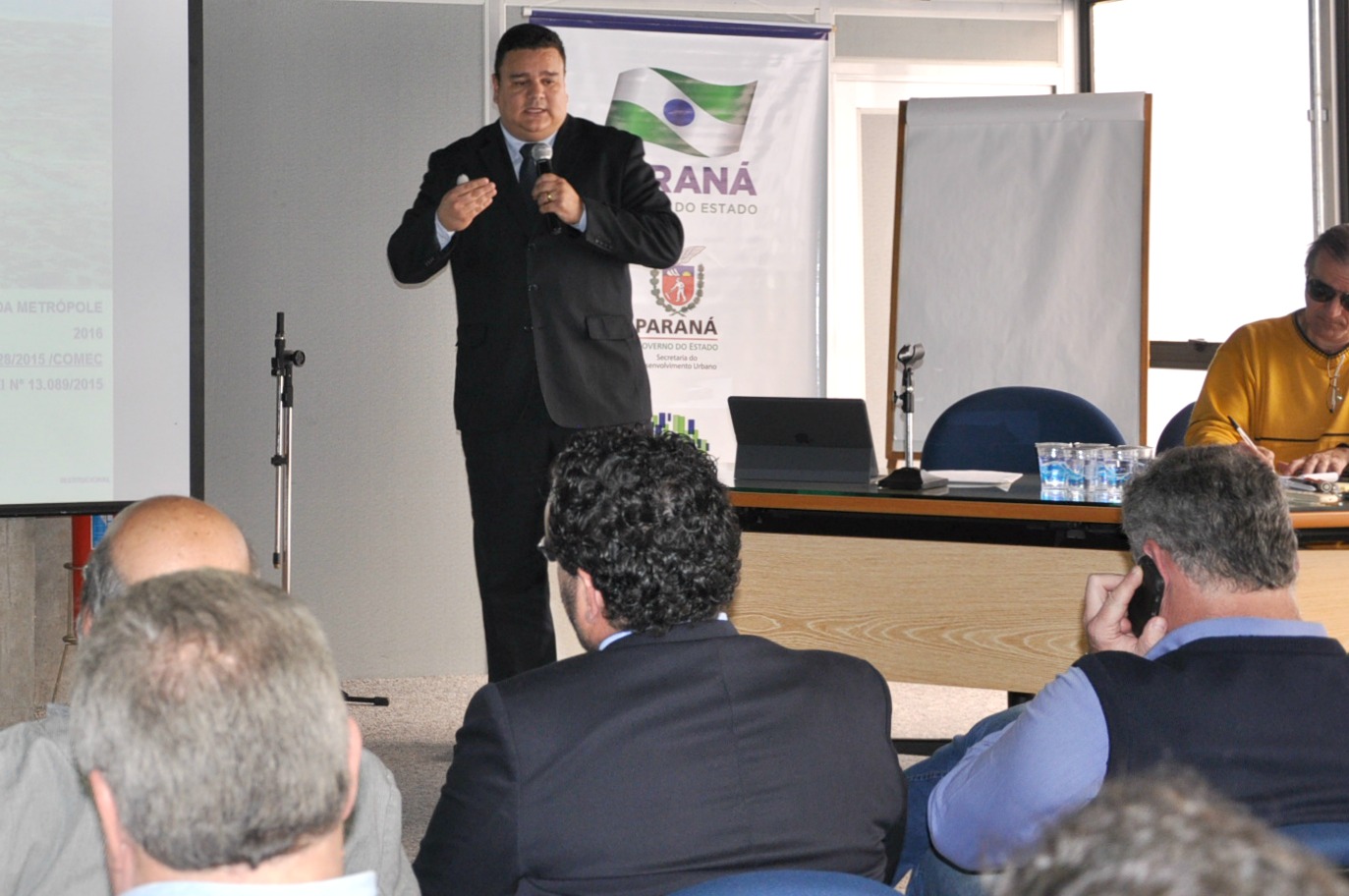 Akel apresentou, aos prefeitos presentes, propostas que modernizem o sistema dentro de uma nova estruturação atualizada, de acordo com a Lei 13.089/2015, o Estatuto da Metrópole. Entre essas diretrizes estão a efetiva participação da sociedade nas tomadas de decisões. “A Sociedade Civil Organizada deverá tomar assento no Conselho Deliberativo. É uma forma de dar resposta ao necessário controle social”, explicou o procurador jurídico do Serviço Social Autônomo (Paranacidade) também presente na reunião.