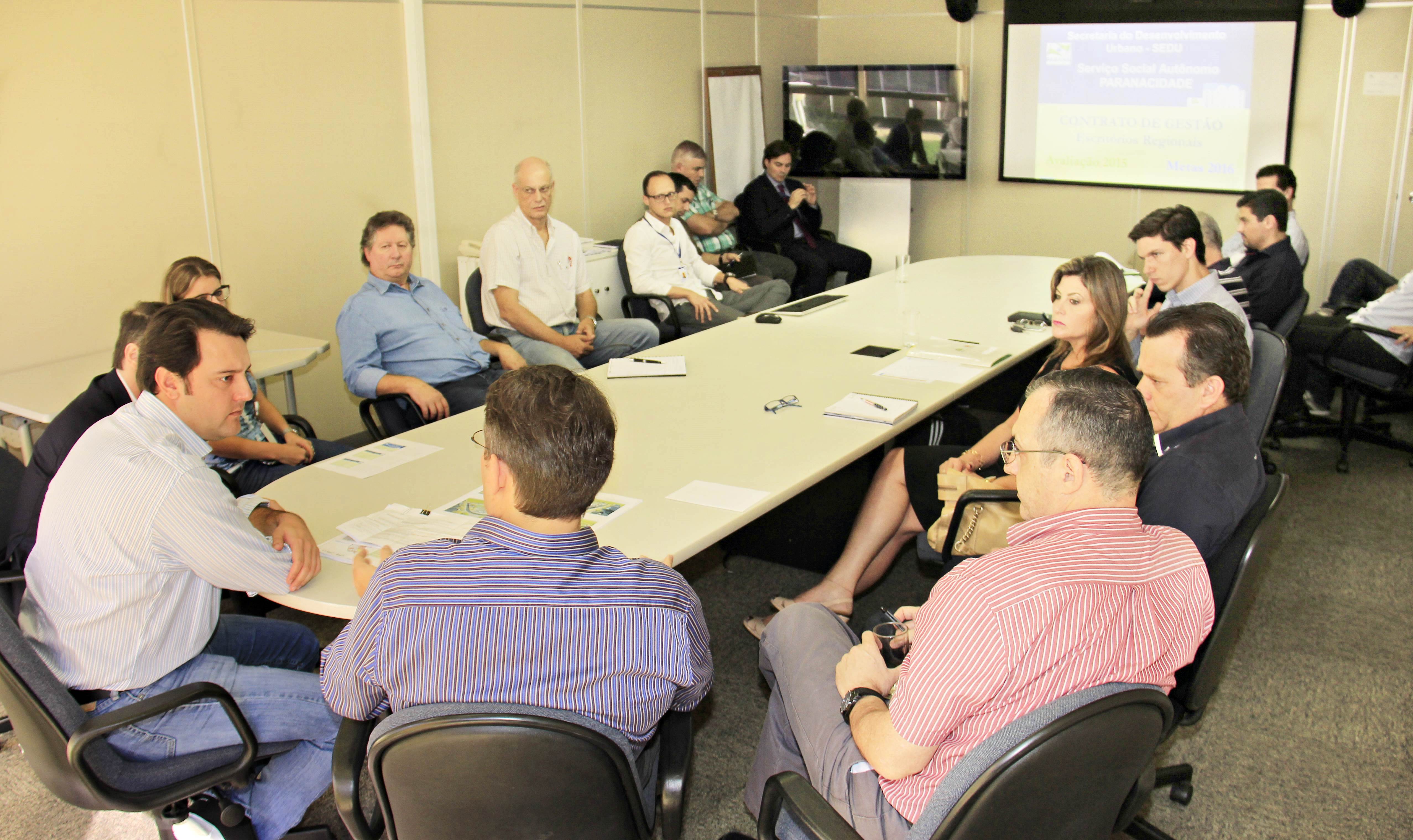Além de Sarolli, os coordenadores dos Escritórios Regionais do Paranacidade que renovaram o Contrato de Gestão são: de Curitiba, Região Metropolitana e Litoral, Francisco dos Santos; de Ponta Grossa, João Paulo Ribeiro Santana, o Jopa; de Londrina, Mônica Mandelli; de Maringá, José Miro Falkemback; e de Guarapuava, Flávio Carlos Veras Junior. Todos passaram o dia em reunião para conhecer melhor o Plano de Ação estratégica para 2016.