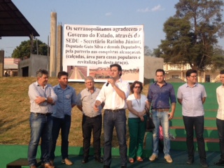 Neste fim de semana o secretário do Desenvolvimento Urbano (SEDU), Ratinho Junior, esteve em Serranópolis do Iguaçu. Junto com deputados e autoridades daquela região, como o prefeito Luiz Carlos Ferri, Ratinho Junior inaugurou a primeira quadra esportiva do projeto ‘Meu Campinho’. O modelo foi inspirado em uma experiência da Alemanha. “A partir de agora, os filhos dos paranaenses vão jogar bola sobre o mesmo tipo de campo de futebol que jogam os filhos dos alemães, de grama sintética. Este é um projeto pioneiro no Brasil, que tira as crianças e jovens das ruas e os atrai para a prática de esporte. Esses campinhos são um lugar seguro e saudável, onde as crianças e adolescentes não ficam ociosos e expostos a riscos das ruas, como drogas e violências. É um projeto que valoriza a autoestima das crianças”, comemora Ratinho.