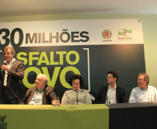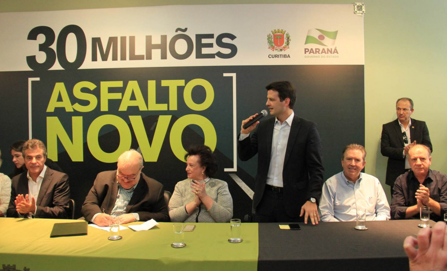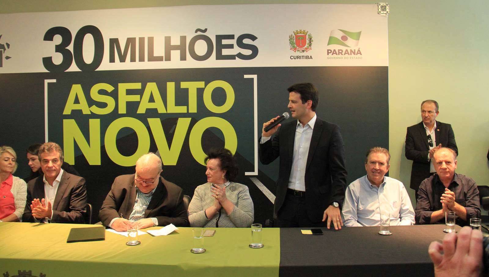 O Governo do Paraná autorizou a liberação de R$ 30 milhões para obras de recuperação asfáltica de 48 km em 59 ruas da capital paranaense. O convênio foi assinado nesta sexta-feira, 1º, pelo governador Beto Richa e o prefeito da Curitiba, Rafael Greca, em cerimônia pública na Prefeitura Municipal da cidade. “Eu me sinto realizado em poder voltar a ajudar a cidade de Curitiba, que me acolheu para ser o prefeito dos curitibanos, por duas vezes. É gratificante consolidar este repasse, que vai melhorar ainda mais a mobilidade urbana de nossa capital e a qualidade de vida dos cidadãos”, disse Richa.