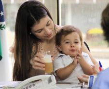 PREFEITAS E MÃES - O deputado Bakri agradeceu o apoio de todos “para a realização deste sonho da população de Ponta Grossa”. Os agradecimentos se sucedem a cada entrega de editais. Na manhã desta quinta-feira, duas prefeitas abriram a agenda de trabalho na SEDU. Elas foram recebidas pelo diretor-geral, Lúcio Tasso. A primeira delas foi a de Agudos do Sul, Luciane Maira Teixeira, já em sua segunda gestão. E a seguinte foi a de Goioxim, Mari Terezinha da Silva. Ambas deram sequência a visita de prefeitas, iniciada na quarta-feira, 21, pela prefeita de Primeiro de Maio, Bruna Casanova, acompanhada do pai, ex-prefeito daquele município, Mario Casanova, e do filho pequeno. No colo da mãe, enquanto a mãe/prefeita assinava um aditivo no valor de R$ 500 mil, a fundo perdido, para pavimentação de ruas em seu município, o menino batia palmas a cada gole de chá tomado.