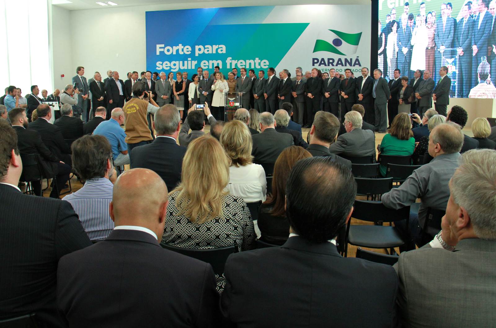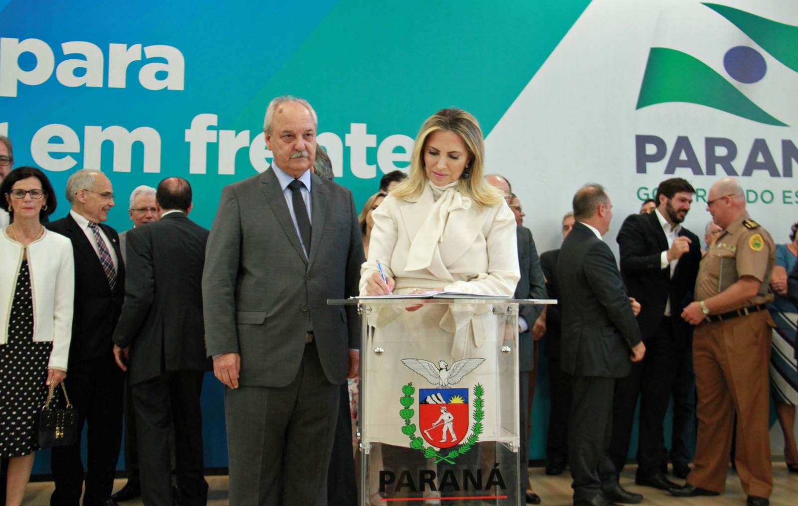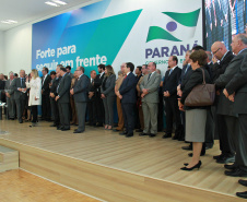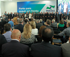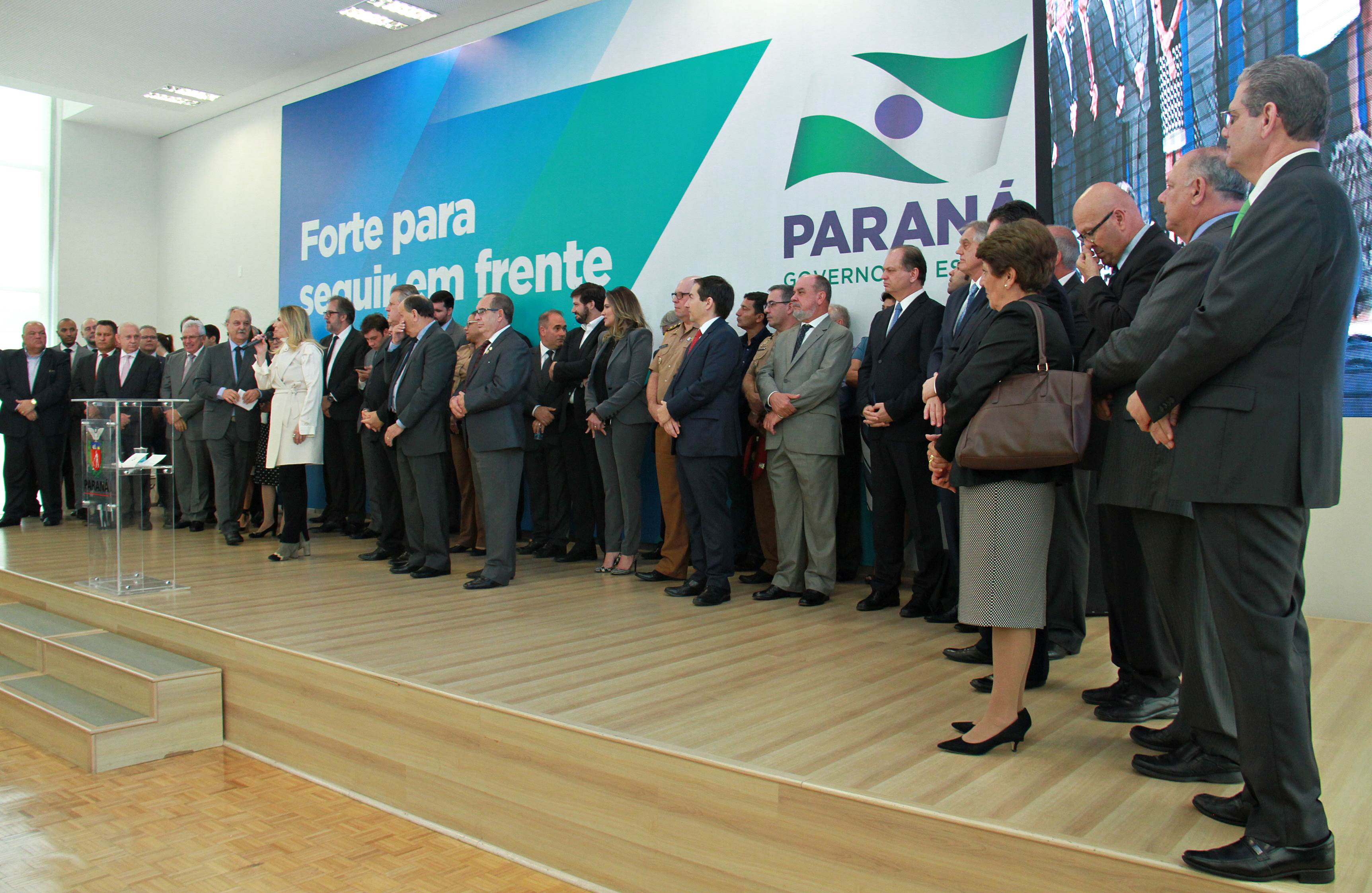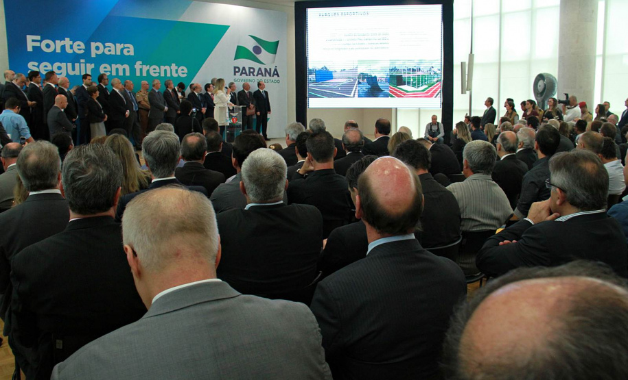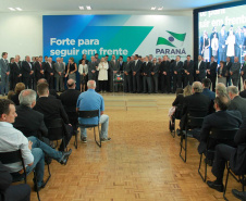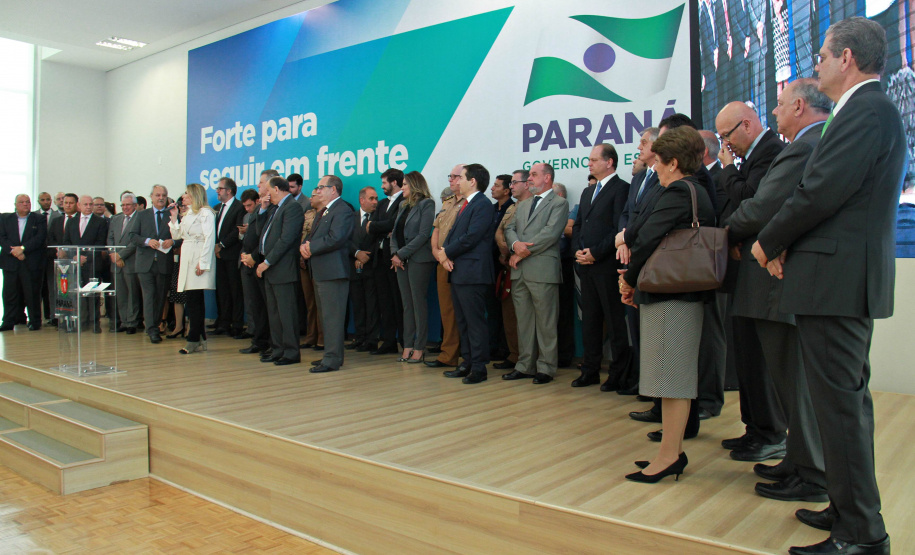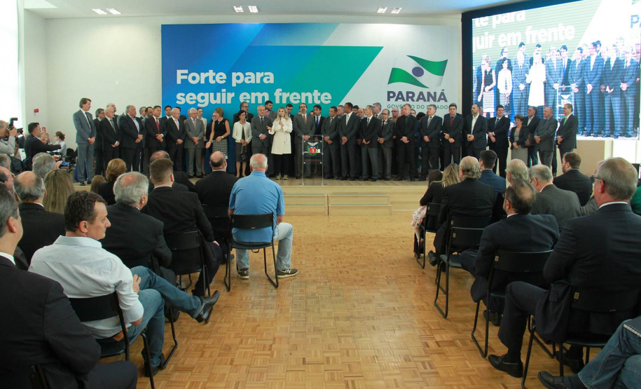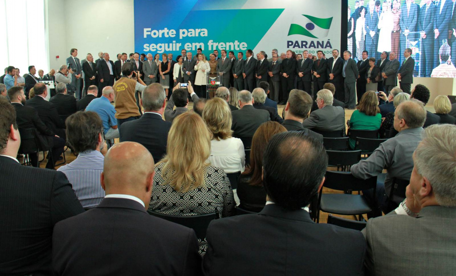 PRESENÇAS- Participaram do evento o presidente da Assembleia Legislativa do Paraná, Ademar Traiano; os deputados estaduais Luiz Claudio Romanelli, Gilson de Souza, Jonas Guimarães, delegado Recalcatti; Shiavinato, Tiago Amaral, Tião Medeiros, Pedro Lupion, Paulo Litro, Bernardo Carli, Márcio Nunes, Evandro Junior, Maria Vitória, Alexandre Curi, Dr. Batista, Artagão Junior; os deputados federais Ricardo Barros, Luiz Carlos Hauly; Osmar Serraglio; o presidente do Tribunal de Contas, Durval Amaral; secretários de Estados de todas as pastas, presidentes e diretores de órgãos estaduais, prefeitos e servidores.