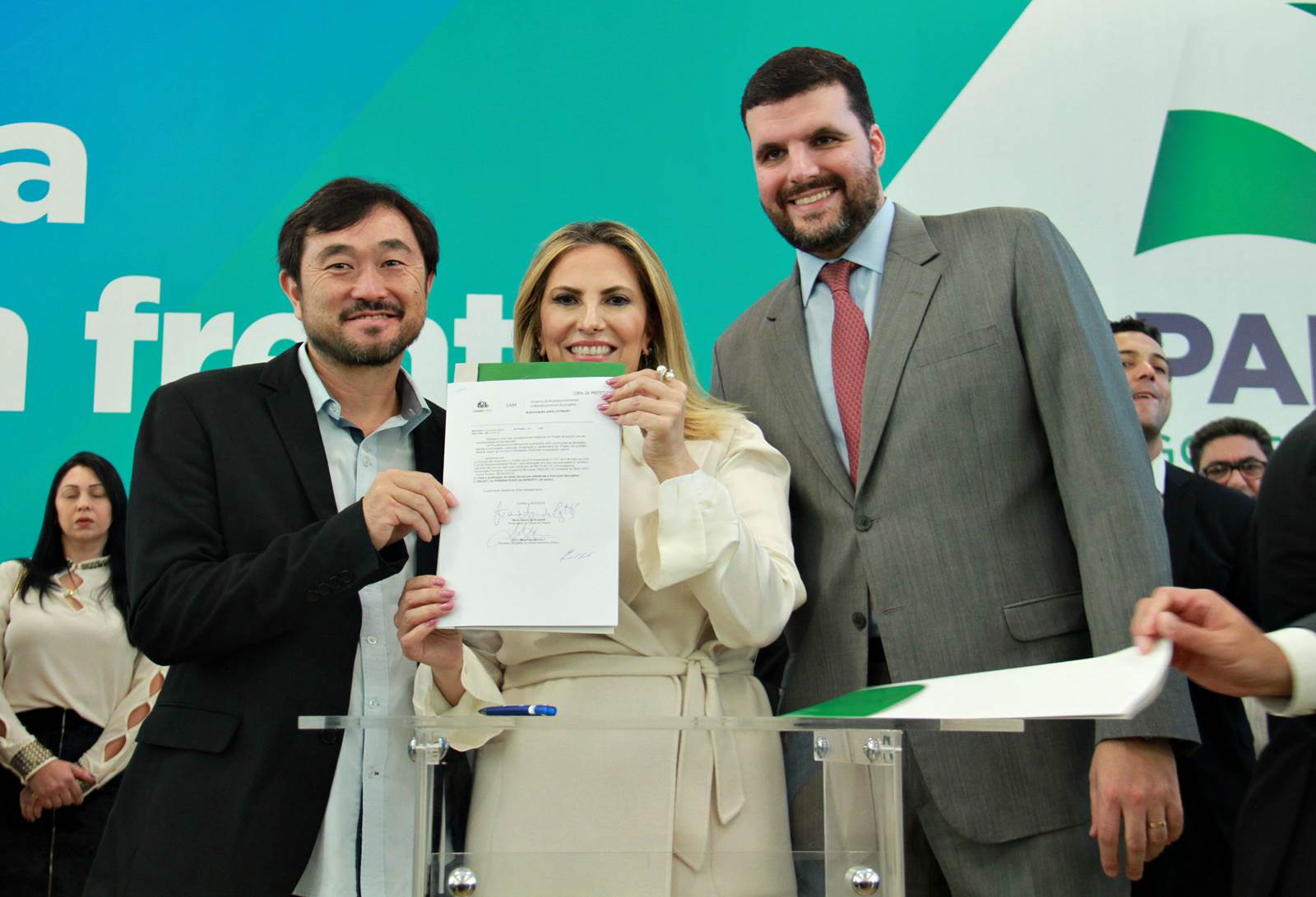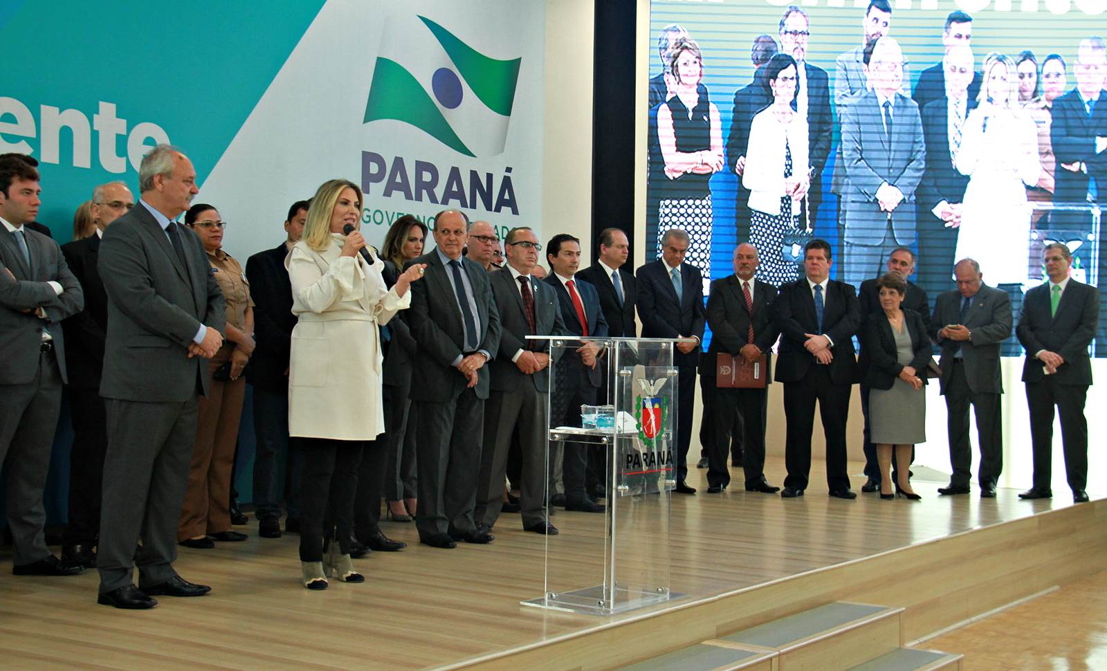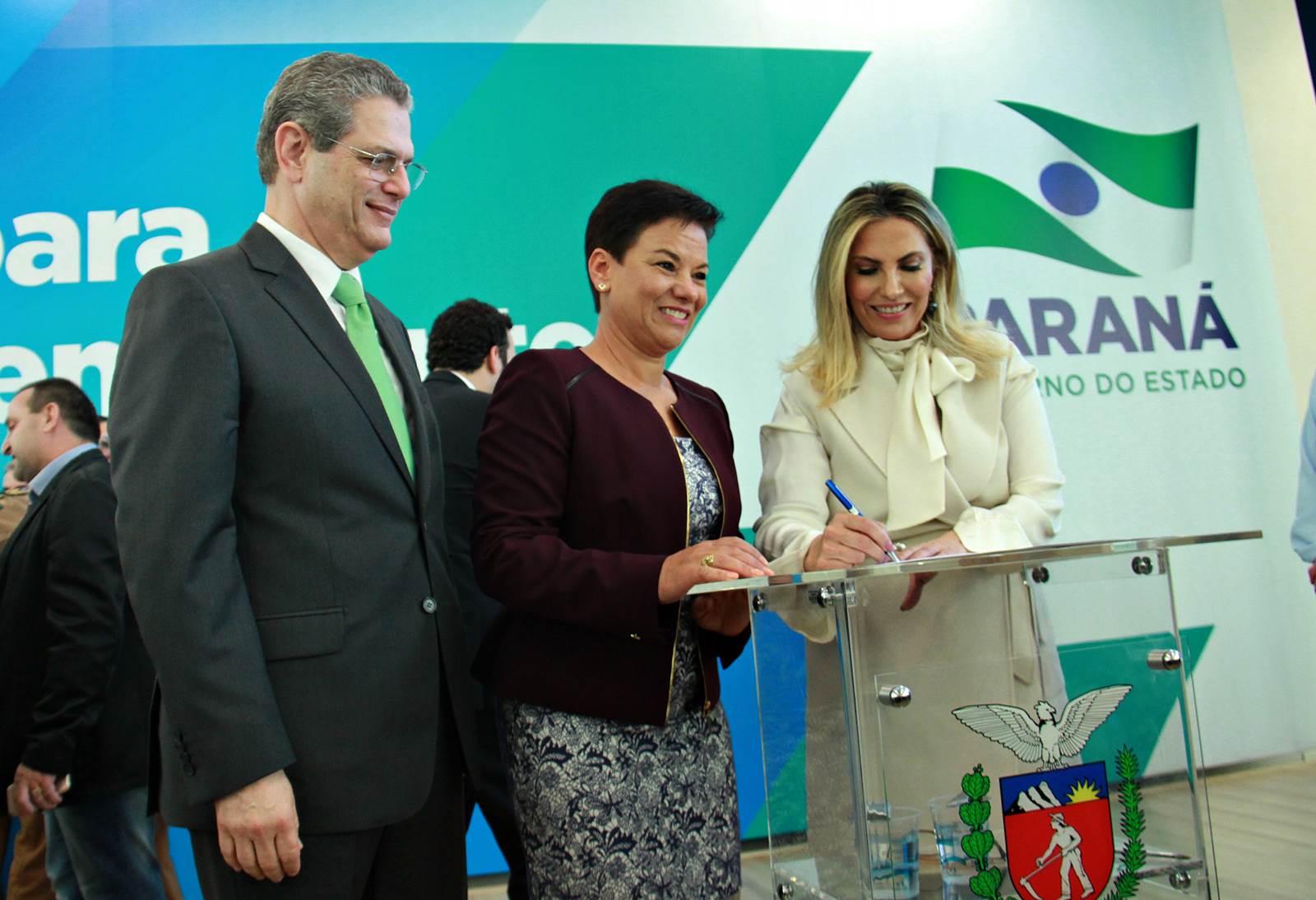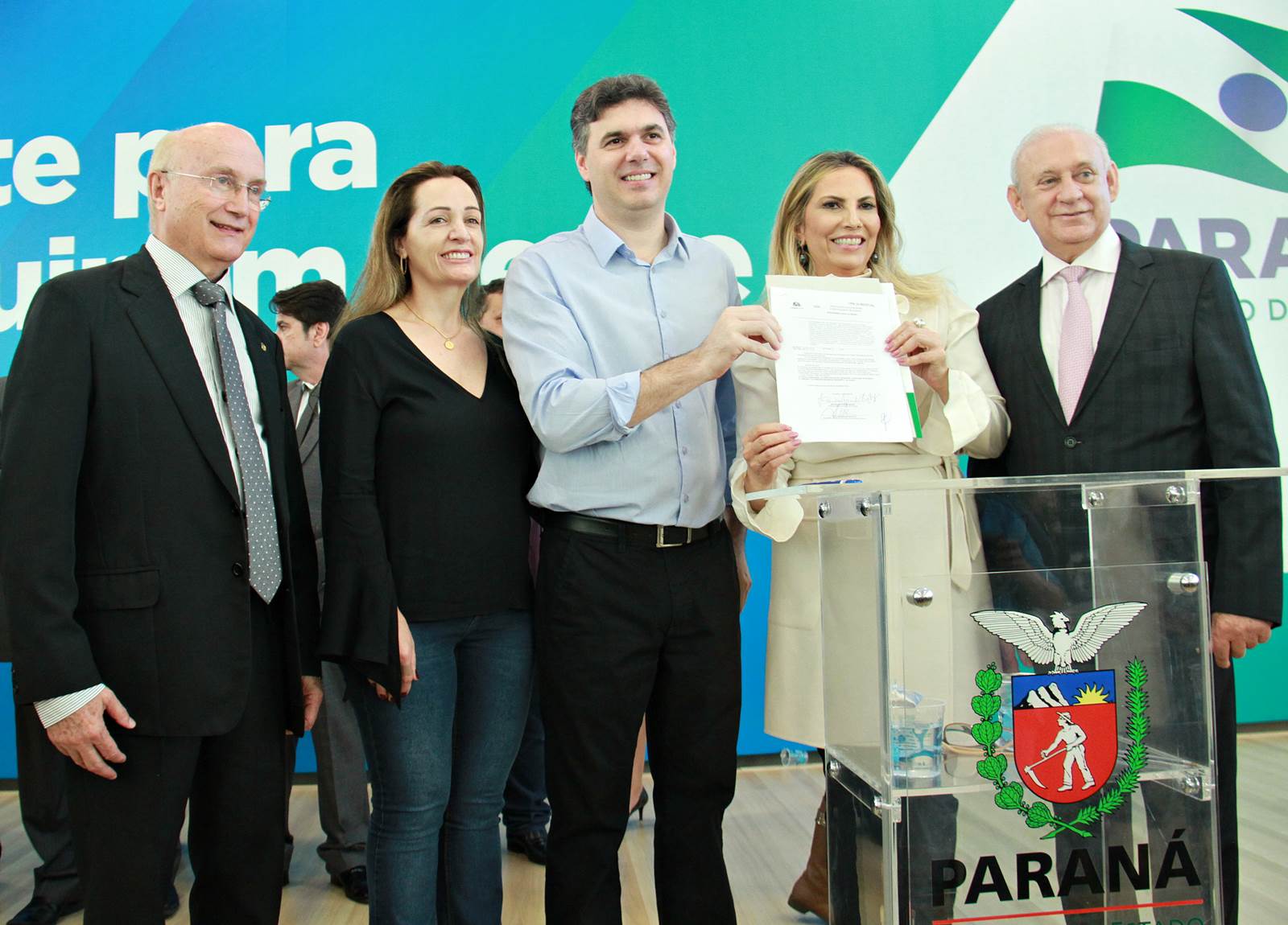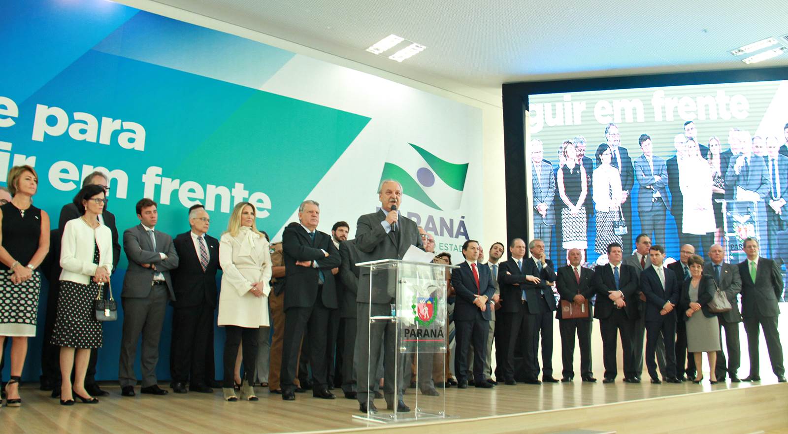 PRESENÇAS- Participaram do evento o presidente da Assembleia Legislativa do Paraná, Ademar Traiano; os deputados estaduais Luiz Claudio Romanelli, Gilson de Souza, Jonas Guimarães, delegado Recalcatti; Shiavinato, Tiago Amaral, Tião Medeiros, Pedro Lupion, Paulo Litro, Bernardo Carli, Márcio Nunes, Evandro Junior, Maria Vitória, Alexandre Curi, Dr. Batista, Artagão Junior; os deputados federais Ricardo Barros, Luiz Carlos Hauly; Osmar Serraglio; o presidente do Tribunal de Contas, Durval Amaral; secretários de Estados de todas as pastas, presidentes e diretores de órgãos estaduais, prefeitos e servidores.