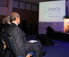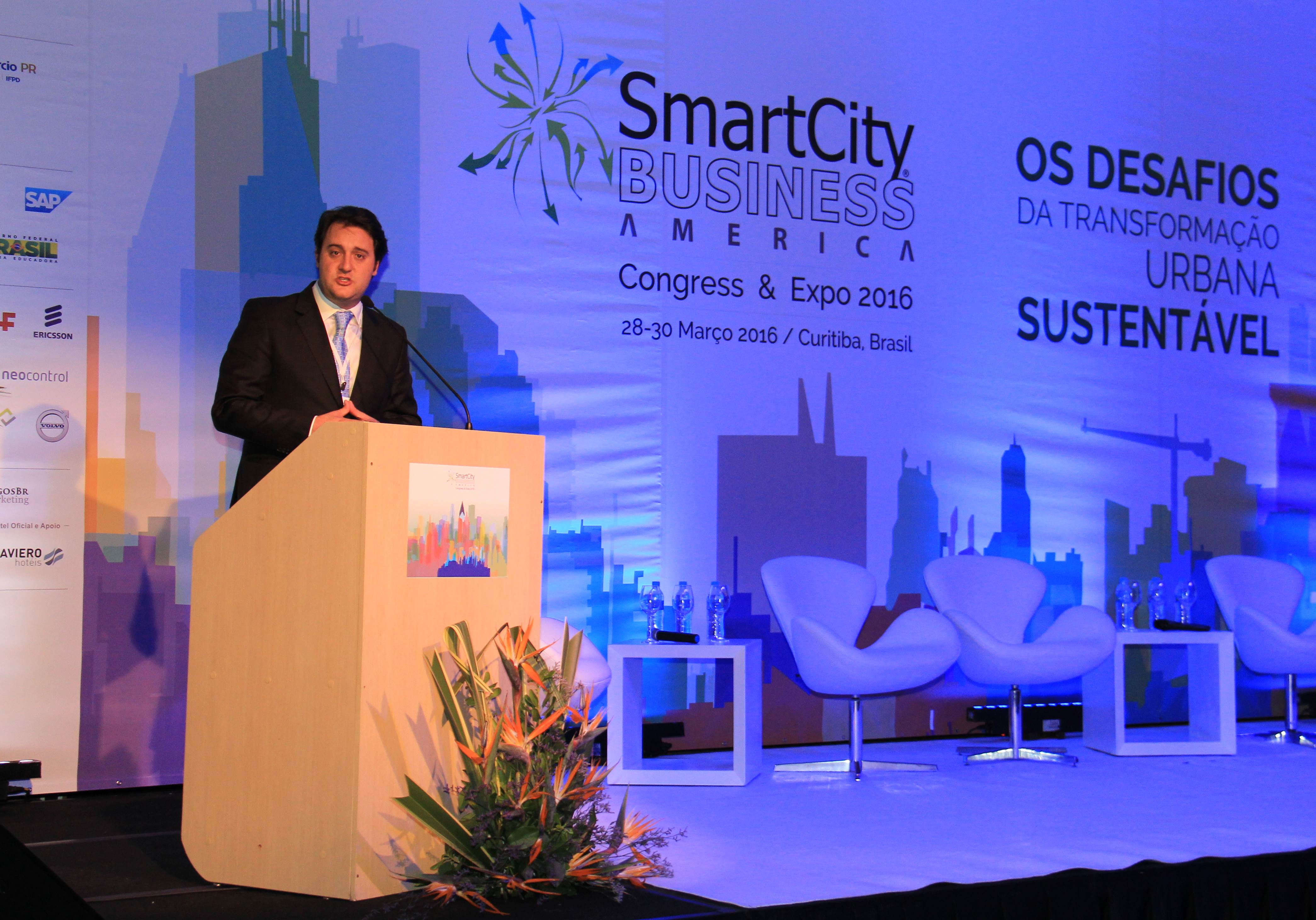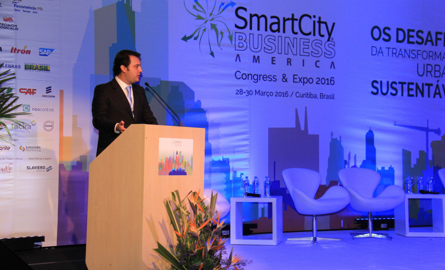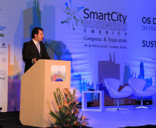 Começou em Curitiba o maior evento da América Latina na promoção do desenvolvimento urbano sustentável das cidades, onde especialistas e líderes de iniciativas inovadoras e transformadoras buscam intensificar contatos em alto nível, compartilhar experiências, conhecimentos, ideais, diferentes visões inovadoras, soluções e casos de sucesso. A abertura oficial do Smart City Business America Congress & Expo 2016, foi na noite desta segunda-feira, 28, na Expo Unimed Curitiba, com a presença de gestores públicos, representantes de órgãos do governo, CEOs, delegações estrangeiras, entidades e instituições. O secretário do Desenvolvimento Urbano, Ratinho Junior, destacou a importância do evento como incentivador de transformações.