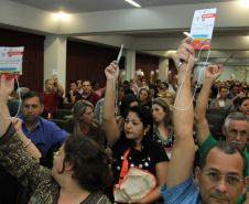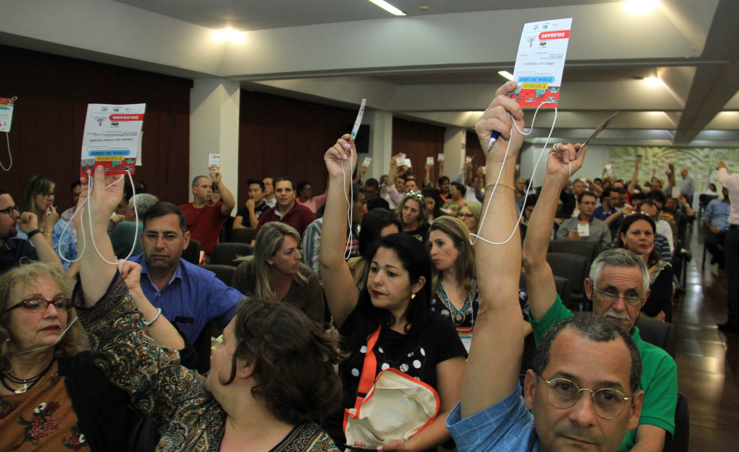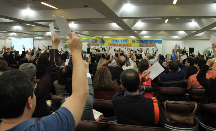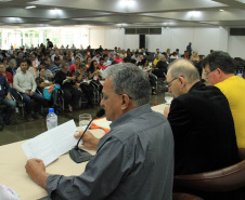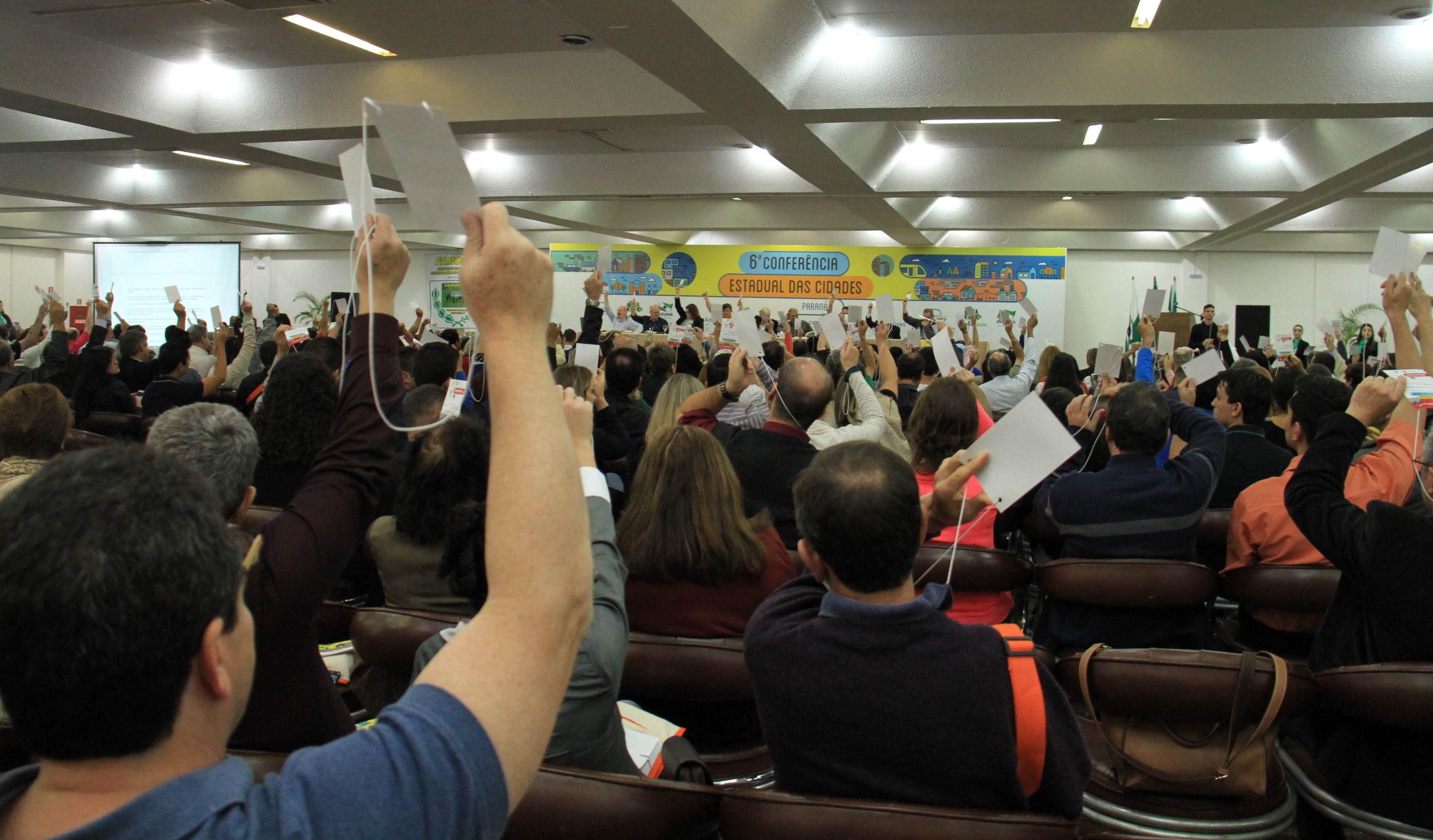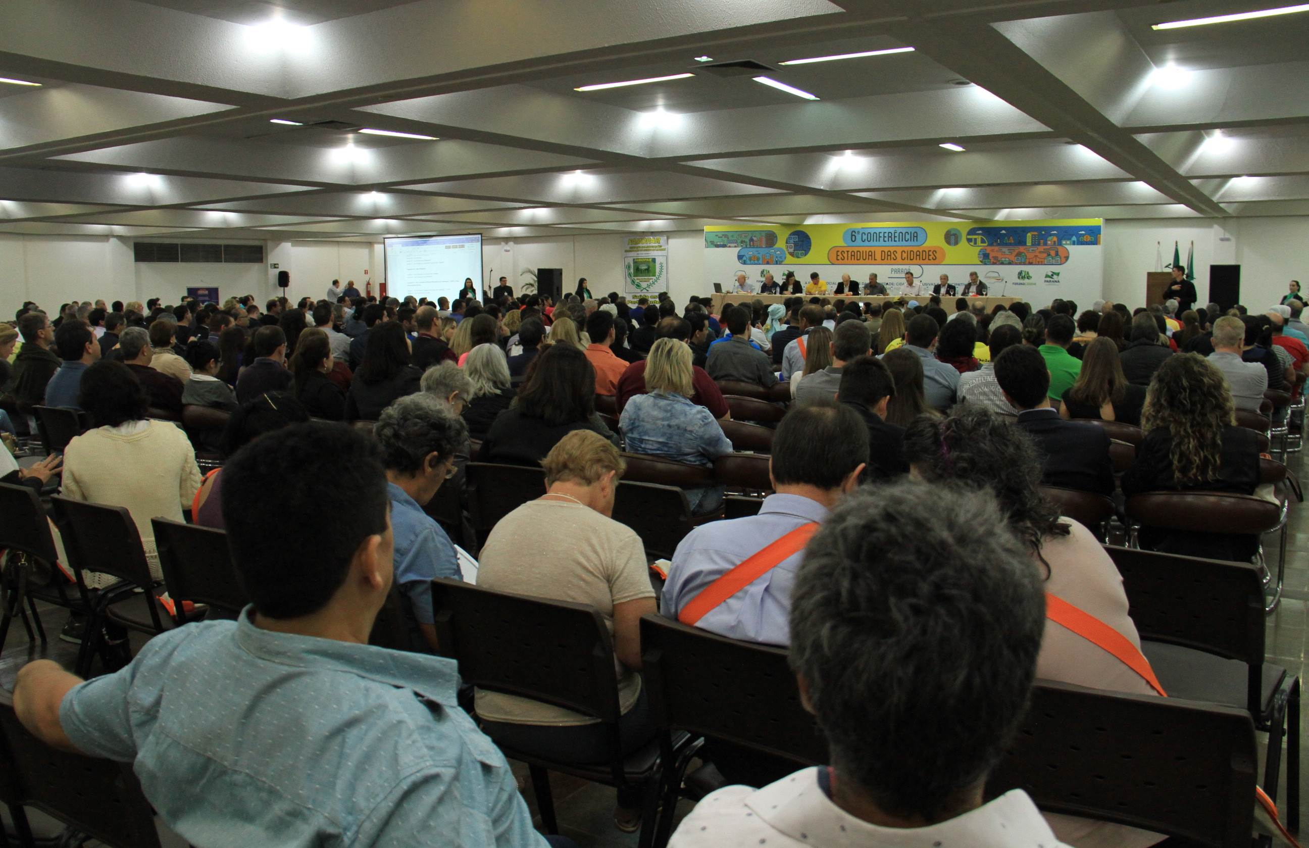 FOZ DO IGUAÇU - Com uma agenda repleta de trabalho, em seu segundo dia, a 6ª Conferência Estadual das Cidades, realizada em Foz do Iguaçu, manteve o ponto alto nas abordagens orientativas e motivacionais para as análises, discussões e votações das mais diversas propostas à solução dos problemas e desafios das cidades, em três grupos temáticos. O interesse pelas questões das cidades começou às 8h30 e foi mantido até às 23 horas, quando terminaram os dois Seminários: sobre o Estatuto da Metrópole e sobre Fracking.