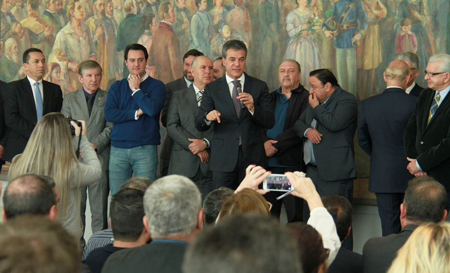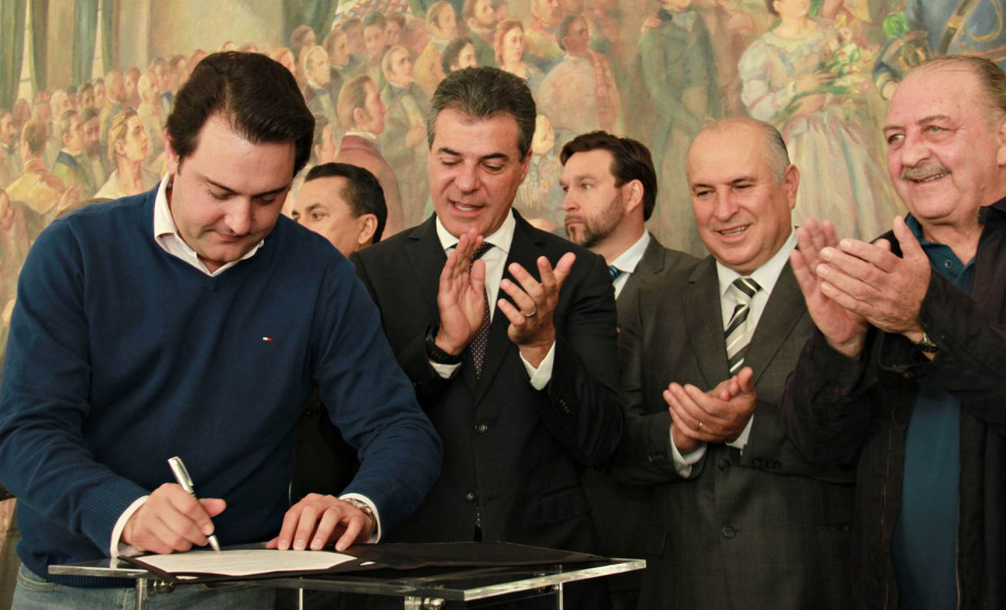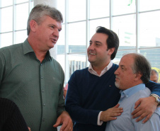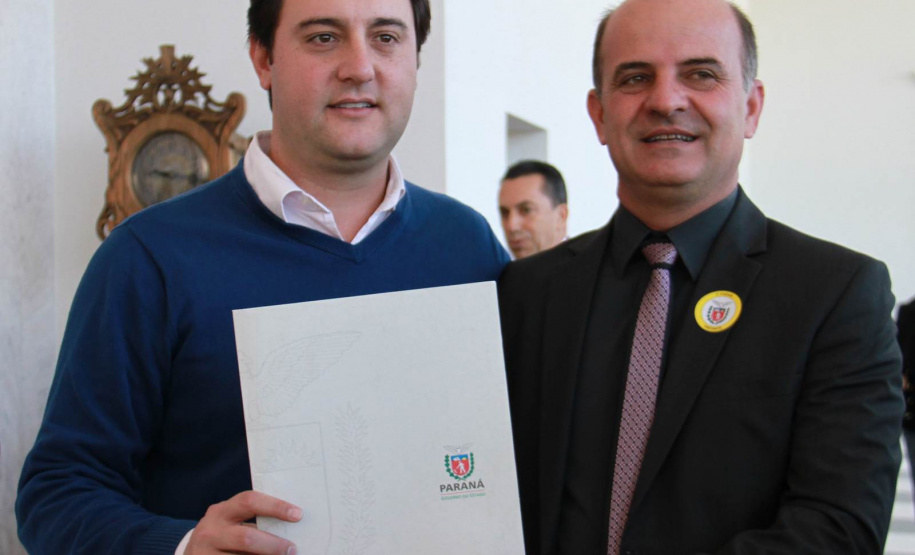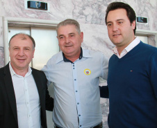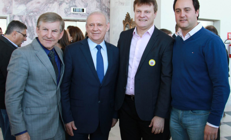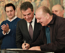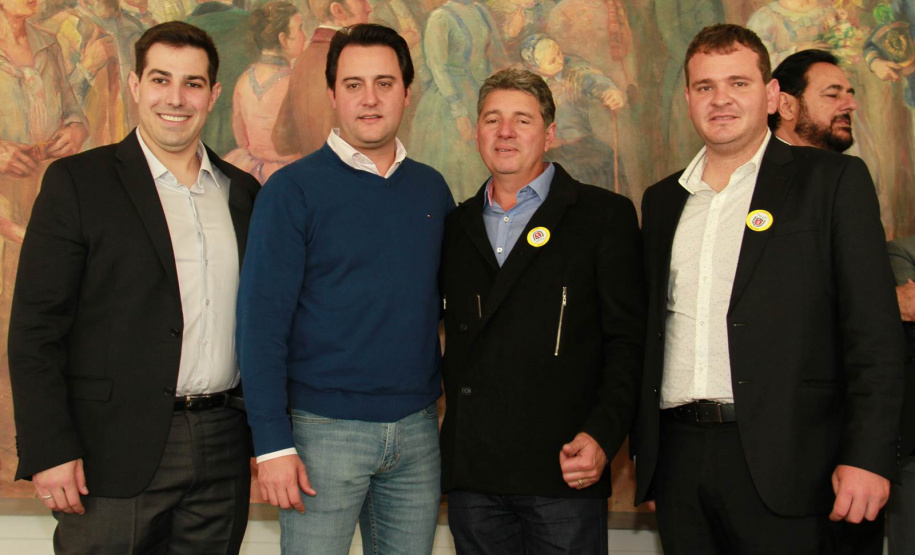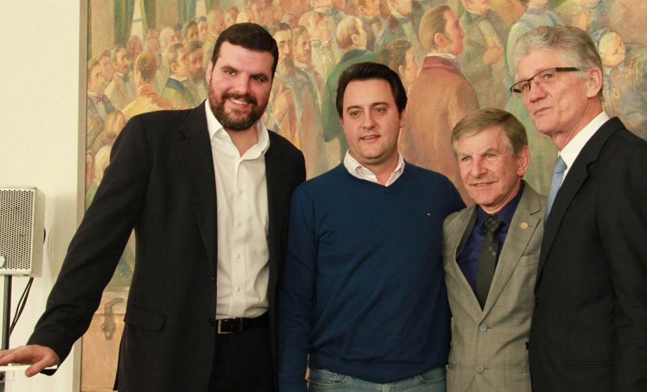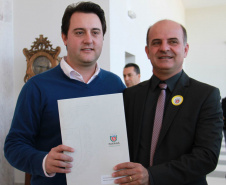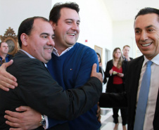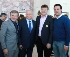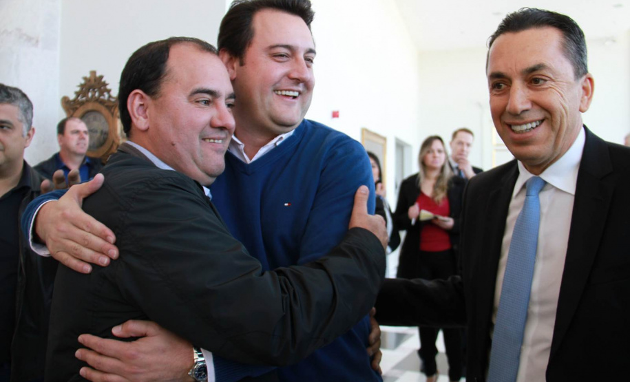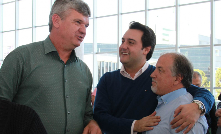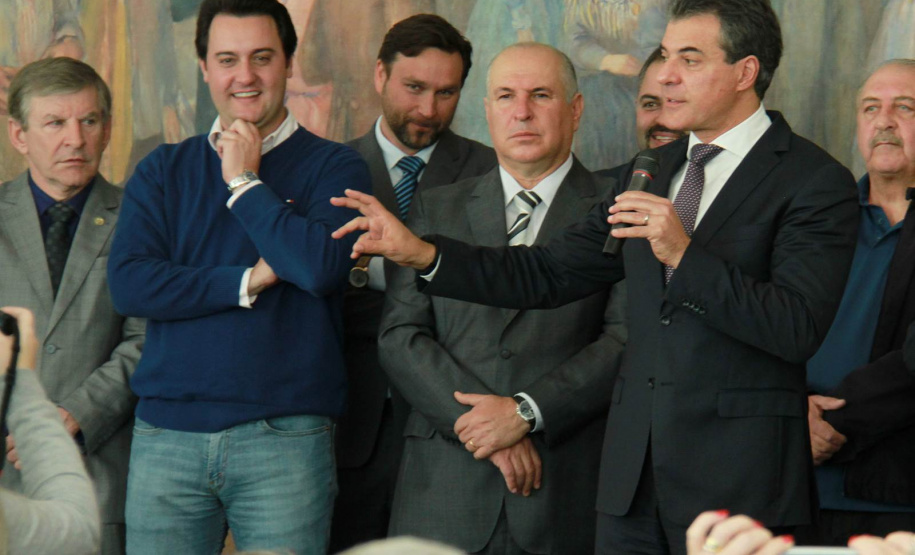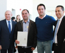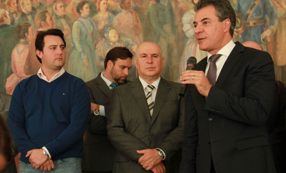 PRESENÇAS - Também participaram da solenidade o chefe da Casa Civil, Valdir Rossoni, os secretários de Estado do Desenvolvimento Urbano, Ratinho Junior; da Agricultura e Abastecimento, Norberto Ortigara; de Infraestrutura e Logística, José Richa Filho; e do Esporte e Turismo, Douglas Fabrício; o presidente da Assembleia Legislativa do Paraná, Ademar Traiano; o deputado federal Luciano Ducci, o vice-presidente e diretor administrativo do BRDE, o ex-governador Orlando Pessuti; os deputados estaduais Wilmar Reichenbach, Márcio Pauliki, Élio Lino Rusch, Maria Vitória, Nelson Justus, Pedro Lupion, Hussein Bakri, Francisco Burher, além do diretor-geral da SEDU, João Carlos Ortega.