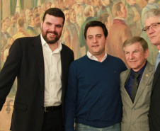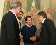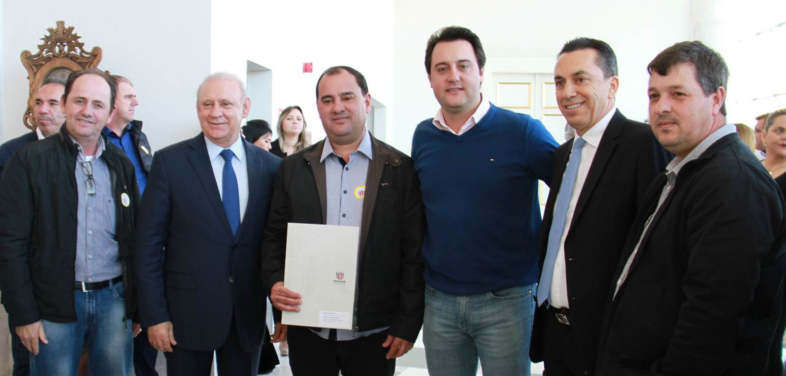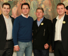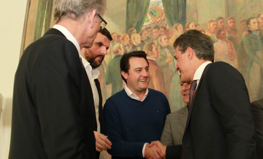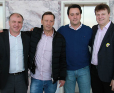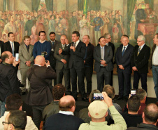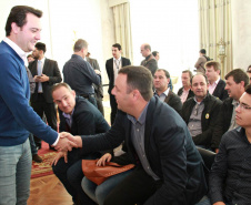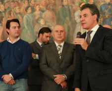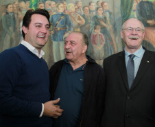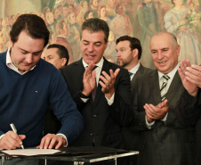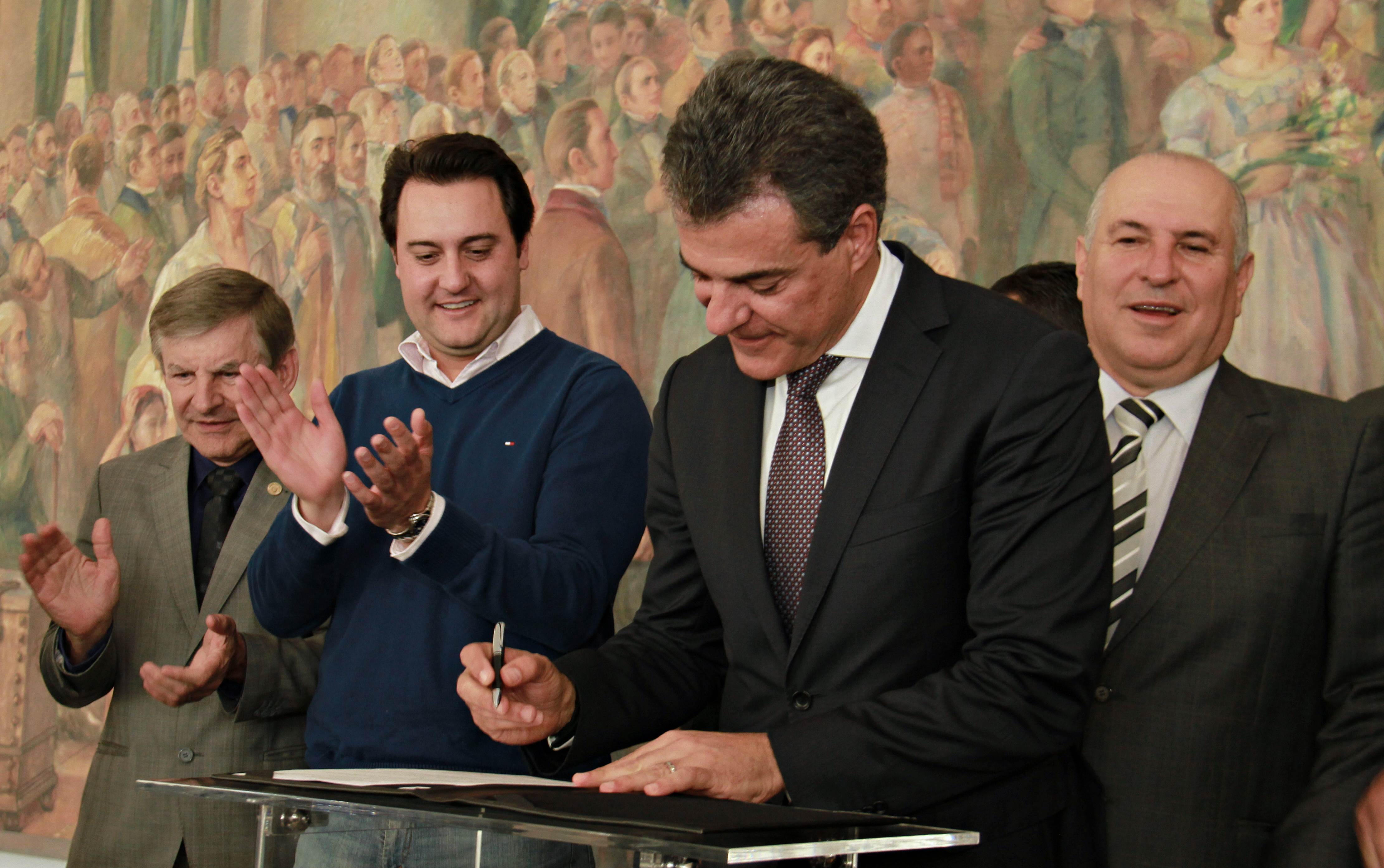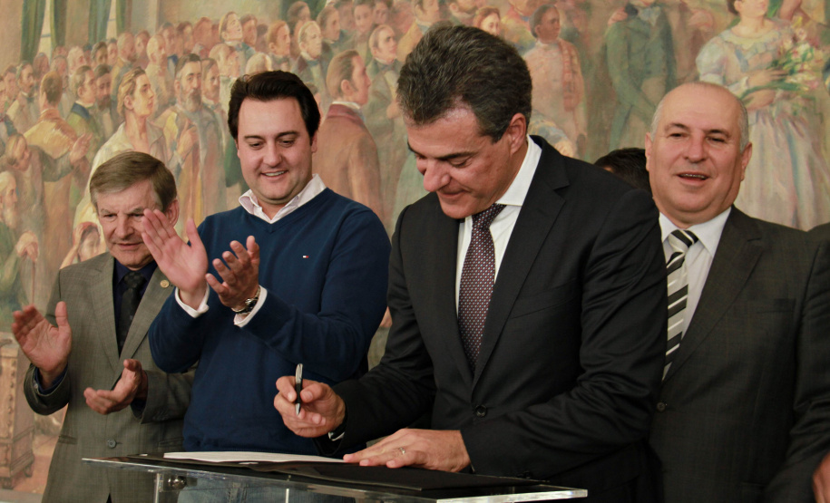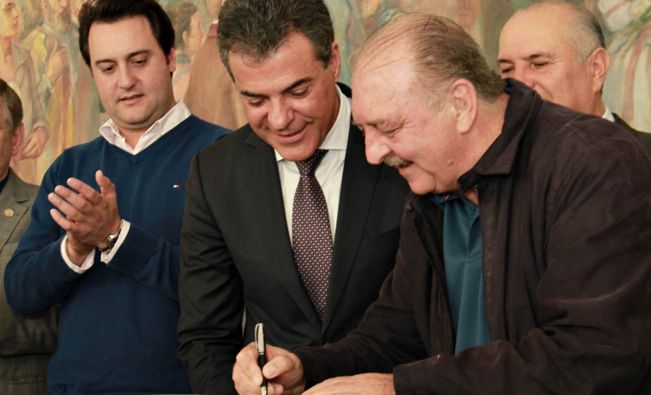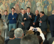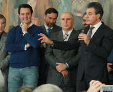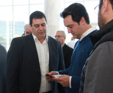 PRESENÇAS - Também participaram da solenidade o chefe da Casa Civil, Valdir Rossoni, os secretários de Estado do Desenvolvimento Urbano, Ratinho Junior; da Agricultura e Abastecimento, Norberto Ortigara; de Infraestrutura e Logística, José Richa Filho; e do Esporte e Turismo, Douglas Fabrício; o presidente da Assembleia Legislativa do Paraná, Ademar Traiano; o deputado federal Luciano Ducci, o vice-presidente e diretor administrativo do BRDE, o ex-governador Orlando Pessuti; os deputados estaduais Wilmar Reichenbach, Márcio Pauliki, Élio Lino Rusch, Maria Vitória, Nelson Justus, Pedro Lupion, Hussein Bakri, Francisco Burher, além do diretor-geral da SEDU, João Carlos Ortega.