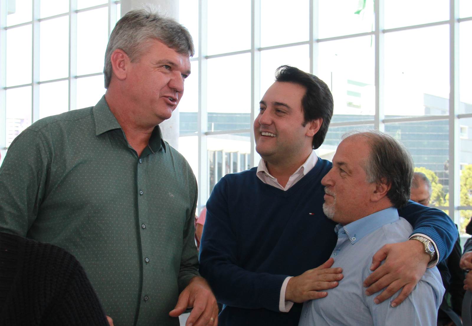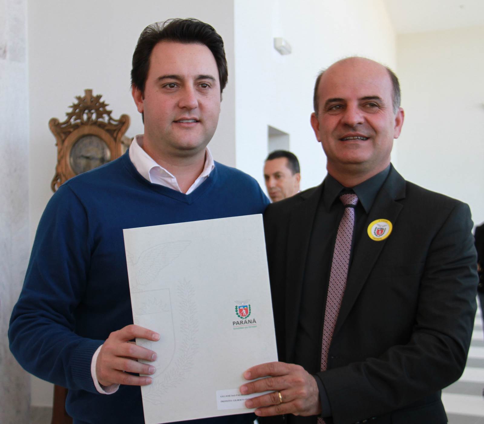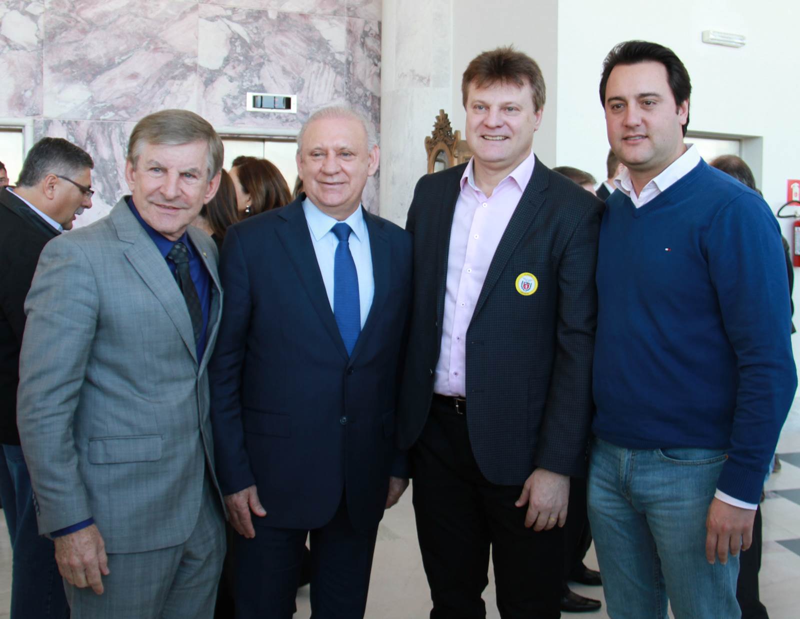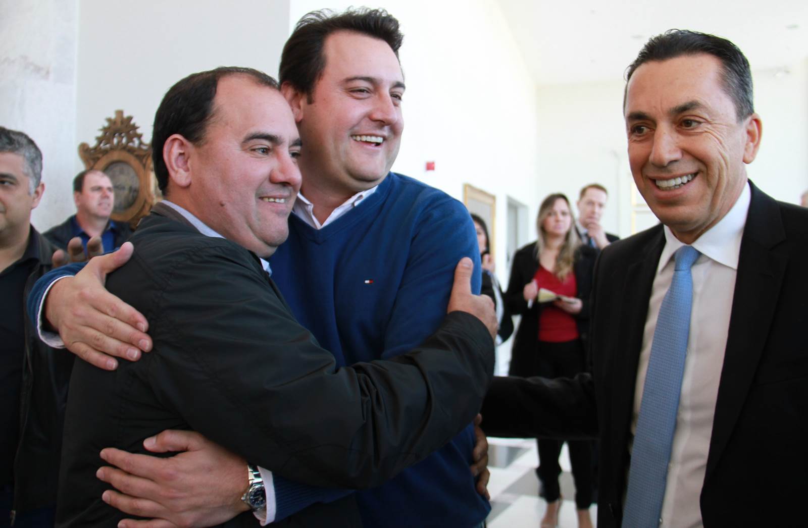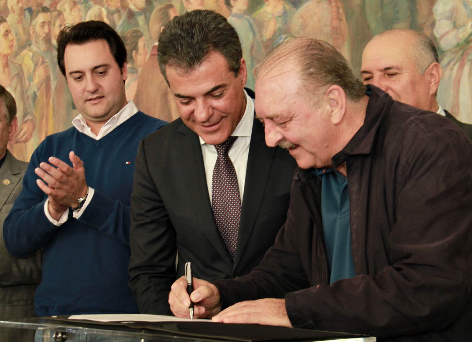 PRESENÇAS - Também participaram da solenidade o chefe da Casa Civil, Valdir Rossoni, os secretários de Estado do Desenvolvimento Urbano, Ratinho Junior; da Agricultura e Abastecimento, Norberto Ortigara; de Infraestrutura e Logística, José Richa Filho; e do Esporte e Turismo, Douglas Fabrício; o presidente da Assembleia Legislativa do Paraná, Ademar Traiano; o deputado federal Luciano Ducci, o vice-presidente e diretor administrativo do BRDE, o ex-governador Orlando Pessuti; os deputados estaduais Wilmar Reichenbach, Márcio Pauliki, Élio Lino Rusch, Maria Vitória, Nelson Justus, Pedro Lupion, Hussein Bakri, Francisco Burher, além do diretor-geral da SEDU, João Carlos Ortega.