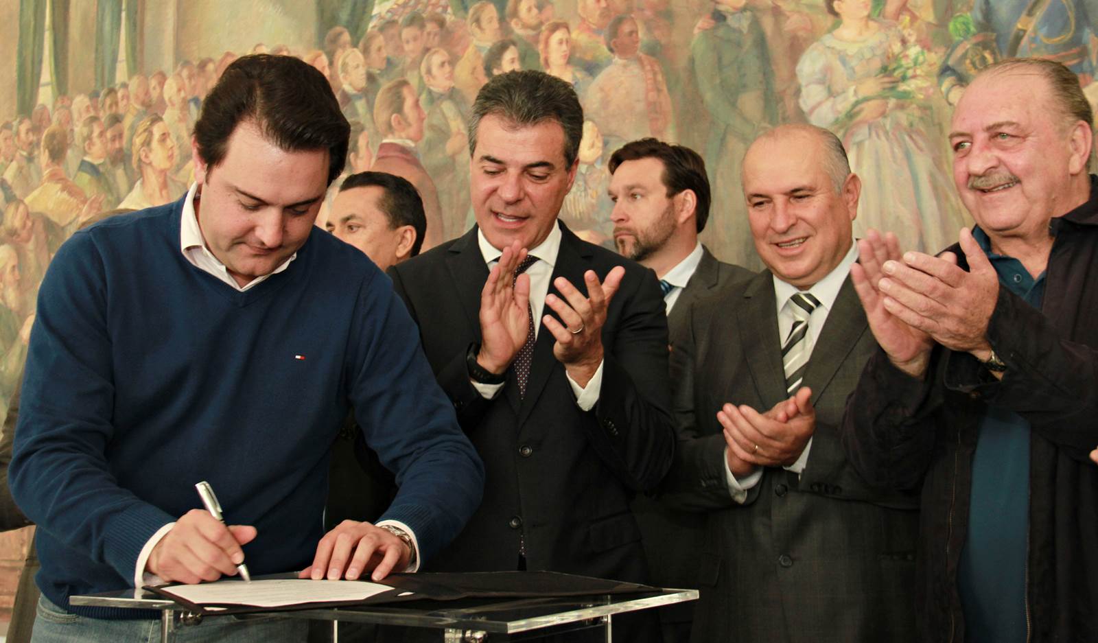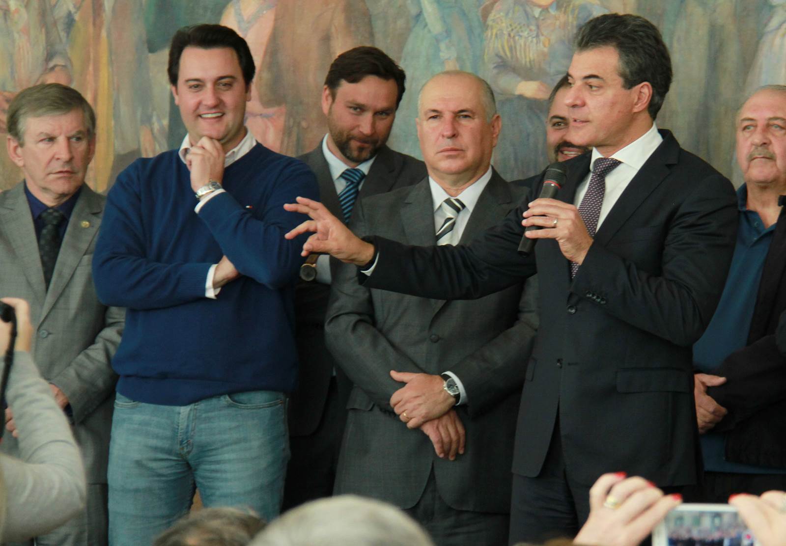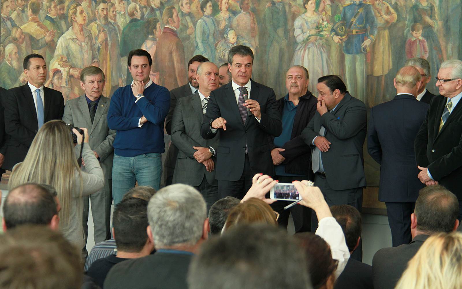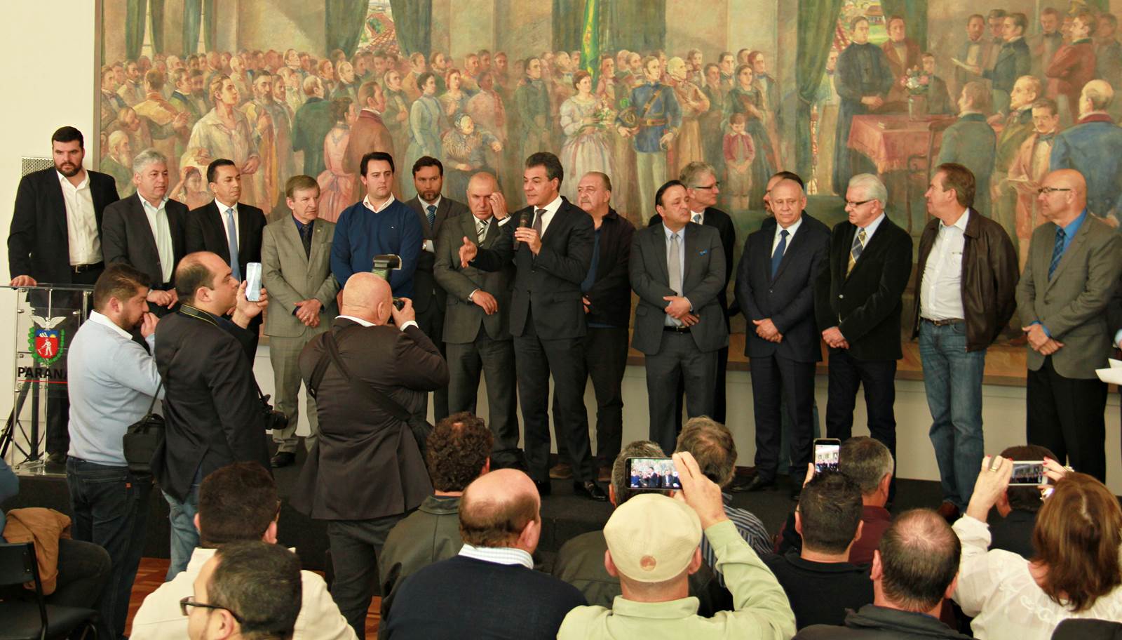 PRESENÇAS - Também participaram da solenidade o chefe da Casa Civil, Valdir Rossoni, os secretários de Estado do Desenvolvimento Urbano, Ratinho Junior; da Agricultura e Abastecimento, Norberto Ortigara; de Infraestrutura e Logística, José Richa Filho; e do Esporte e Turismo, Douglas Fabrício; o presidente da Assembleia Legislativa do Paraná, Ademar Traiano; o deputado federal Luciano Ducci, o vice-presidente e diretor administrativo do BRDE, o ex-governador Orlando Pessuti; os deputados estaduais Wilmar Reichenbach, Márcio Pauliki, Élio Lino Rusch, Maria Vitória, Nelson Justus, Pedro Lupion, Hussein Bakri, Francisco Burher, além do diretor-geral da SEDU, João Carlos Ortega.