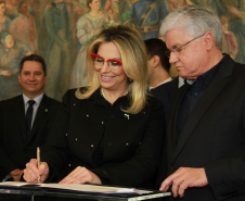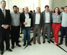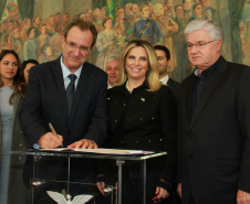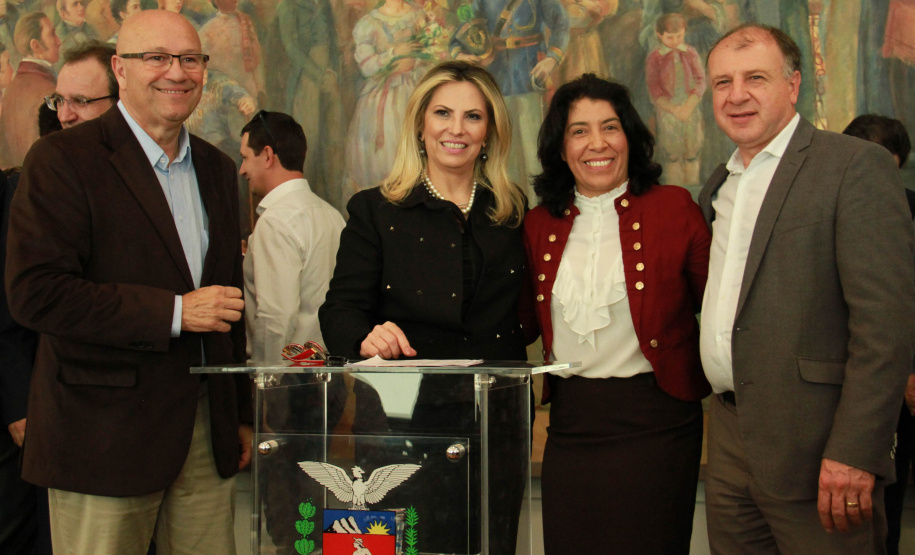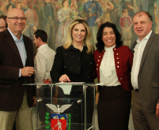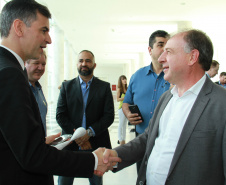 PRESENÇAS: Acompanharam a solenidade o ministro da Saúde, Ricardo Barros; o presidente da Assembleia Legislativa do Paraná, Ademar Traiano; os secretários de Estado da Administração, Fernando Ghignone; do Esporte e Turismo, Douglas Fabrício, e de Assuntos Estratégicos, Edgar Bueno; além dos deputados estaduais Luiz Cláudio Romanelli, Alexandre Curi, Alexandre Guimarães, André Bueno, Bernardo Carli, Cantora Mara Lima, Cobra Repórter, Dr. Batista, Elio Rusch, Evandro Junior, Gilson de Souza, Hussein Bakri, Márcio Nunes, Maria Victória, Nelson Justus e Tião Medeiros.