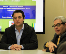 Os municípios de Cascavel, Pato Branco e Paranaguá receberam nesta terça-feira, 13, Projetos Conceituais de Gestão e Monitoramento da Segurança Inteligente para serem aplicados em suas respectivas cidades. Os Projetos foram entregues, ao secretário do Desenvolvimento Urbano, Ratinho Junior, pelo representante da Comunidade Israelita do Paraná, Charles London. Em uma nova conceituação de gestão pública, os projetos se baseiam em pesquisas e estudos intensos nas três cidades e mostram a síntese de soluções inteligentes e os benefícios à população. “É um salto para o futuro. As soluções praticadas nos três municípios pilotos serão ampliadas para todos os paranaenses”, resumiu Ratinho Junior, ao agradecer as doações feitas pelo Estado de Israel e da Comunidade Israelita do Paraná.
