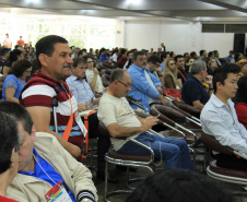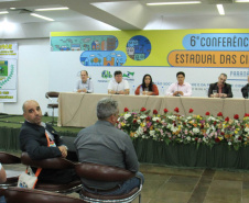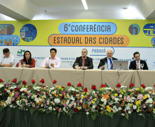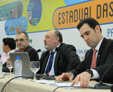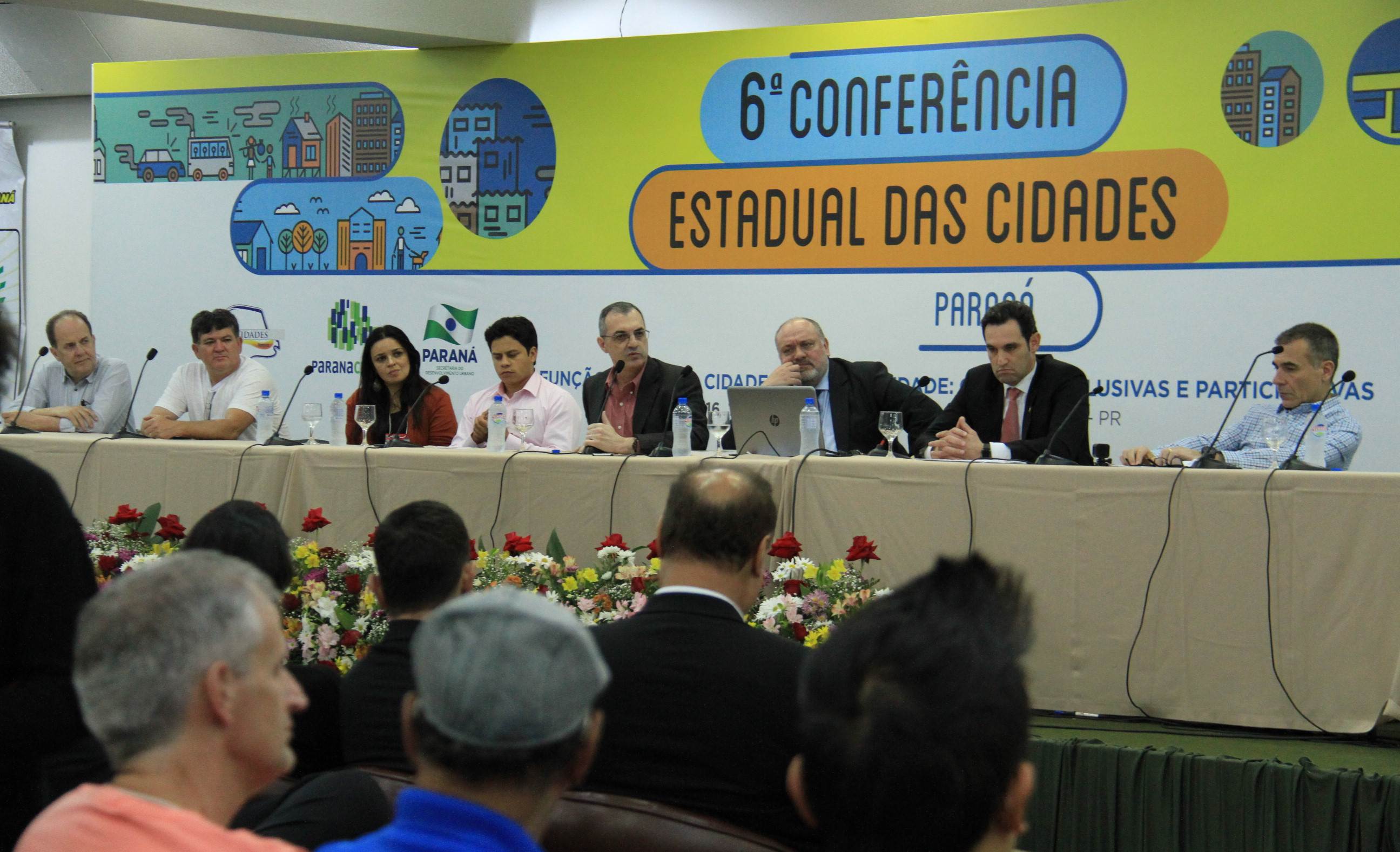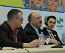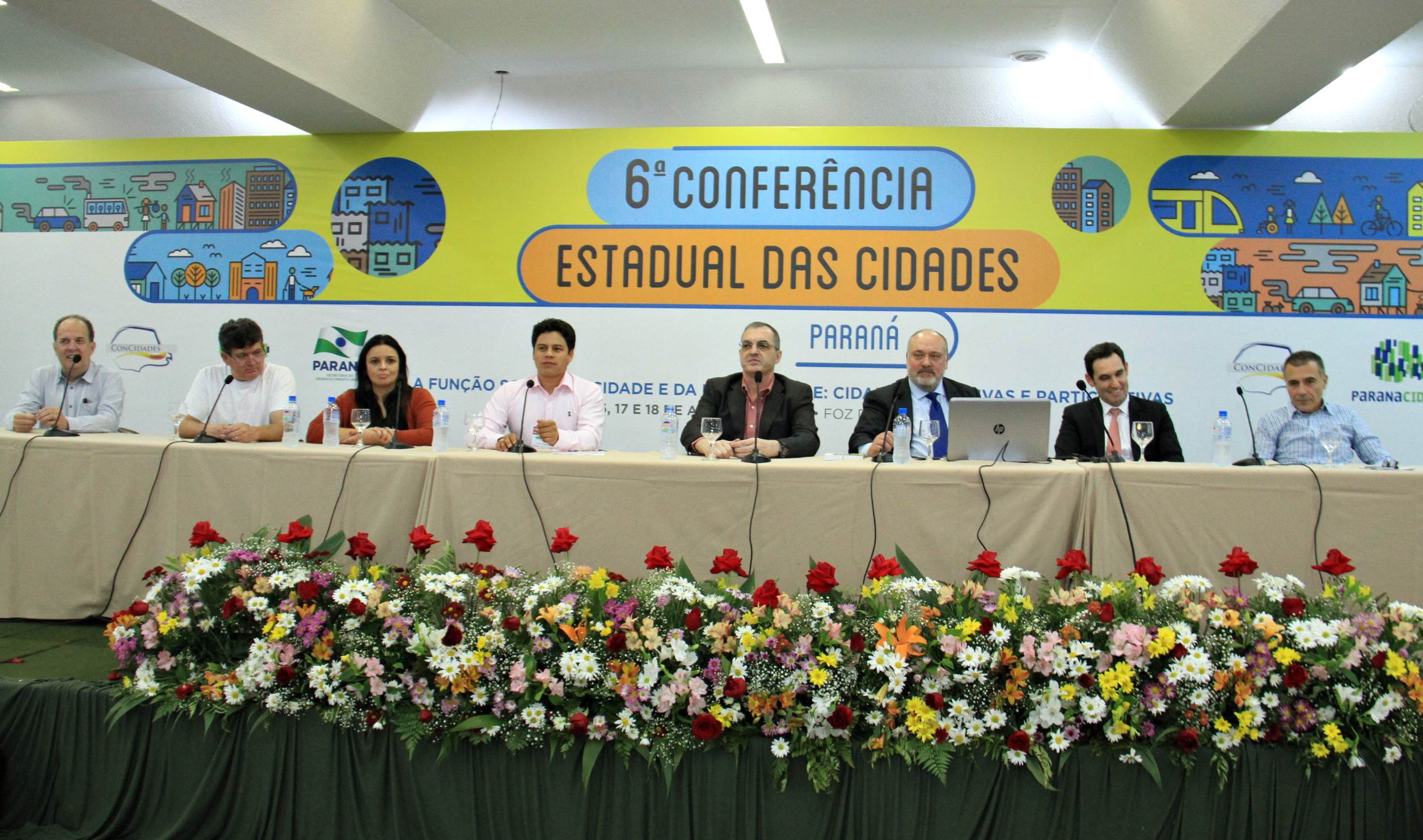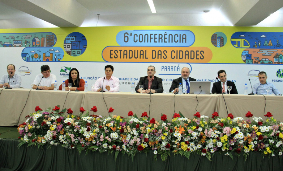 ESTATUTO DA METRÓPOLE - Fizeram parte da mesa de trabalhos o diretor de operações do Serviço Social Autônomo (Paranacidade), e coordenador do Grupo Técnico para o Estatuto da Metrópole pela SEDU e Paranacidade, o engenheiro agrônomo Alvaro Cabrini Junior; o coordenador do Centro de Apoio às Promotorias do Meio Ambiente, de Habitação e Urbanismo, o procurador Alberto Vellozo Machado; o presidente da Comissão de Assuntos Metropolitanos da Assembleia Legislativa do Paraná, o deputado estadual Alexandre Guimarães; o arquiteto e urbanista da SEDU, Clóvis Ultramari; o coordenador executivo desta Conferência, Antônio Weinhardt Junior; do segmento de profissionais, Academia e Pesquisas, a coordenadora Andrea Braga; e representante da ONG Apofilar, Ailton Lima.