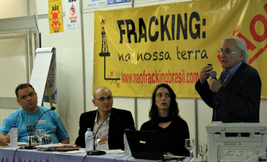 Também fez palestra o coordenador do projeto Rede Guarani - Serra Geral, no Estado de Santa Catarina, o geólogo e professor Luiz Fernando Scheibe. Ele explicou, de maneira técnica, as formas de contaminação e a sua preocupação com o enorme volume de água necessário para esta exploração.