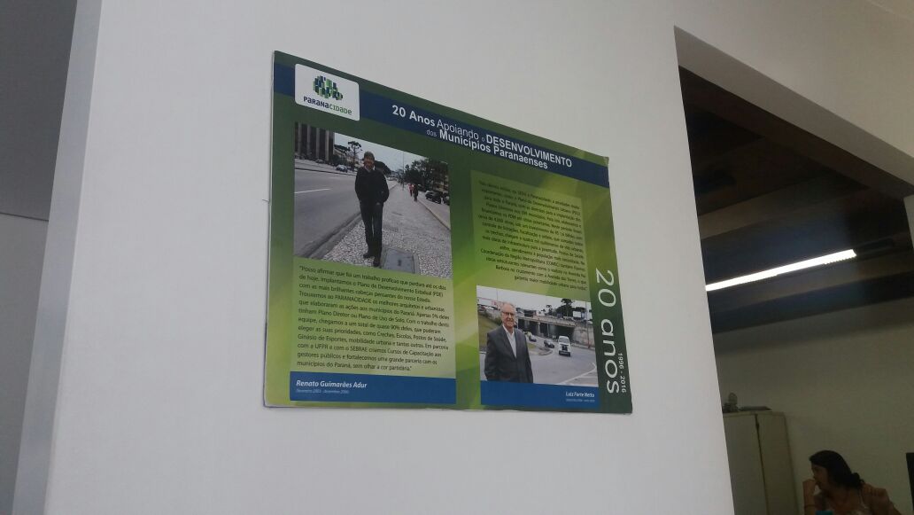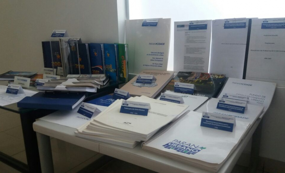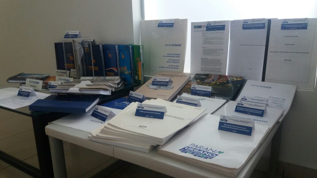 DUAS ETAPAS - Por se tratar de um material muito vasto, de 20 anos de atividades, a Exposição foi dividida em duas partes. Na primeira parte, foram expostas a coletânea de obras e serviços; história sobre os programas de desenvolvimento municipal do Paraná; “button” Paraná Urbano; convite para a Exposição de Encerramento do Programa Paraná Urbano; livro comemorativo do Programa Paraná Urbano; encarte de apresentação da entidade; encartes de divulgação das atividades da entidade (português, inglês e espanhol); modelo de simulações financeiras do Fundo de Desenvolvimento Urbano (FDU).